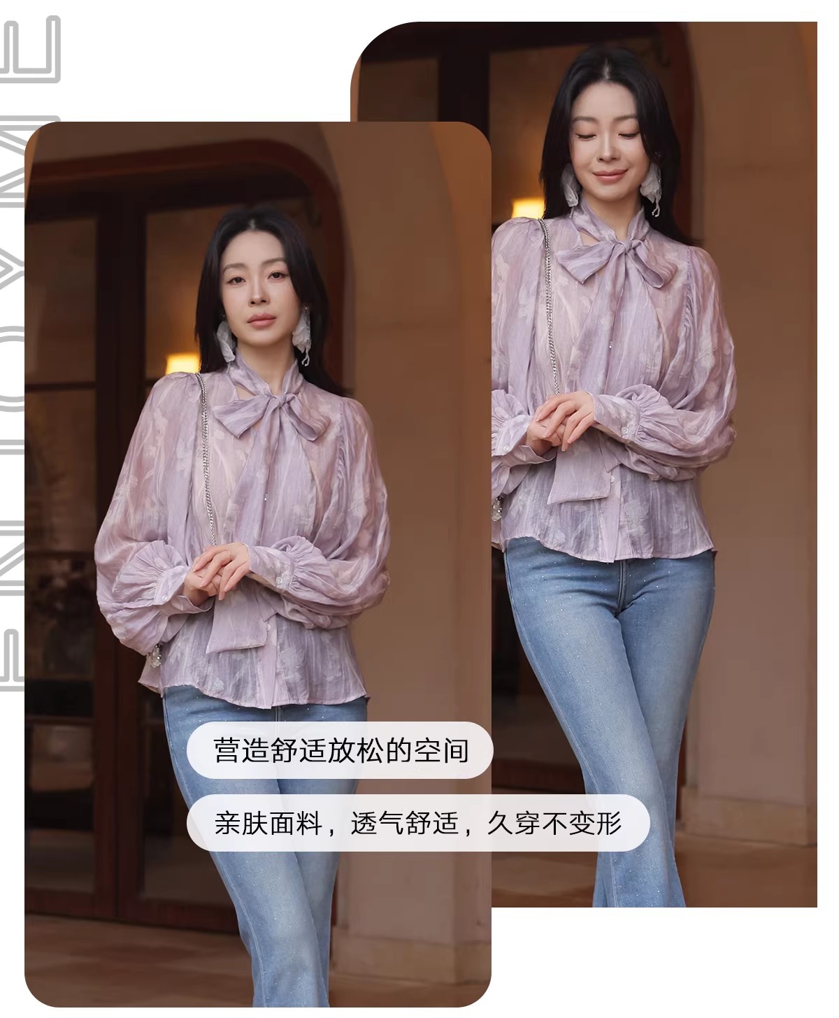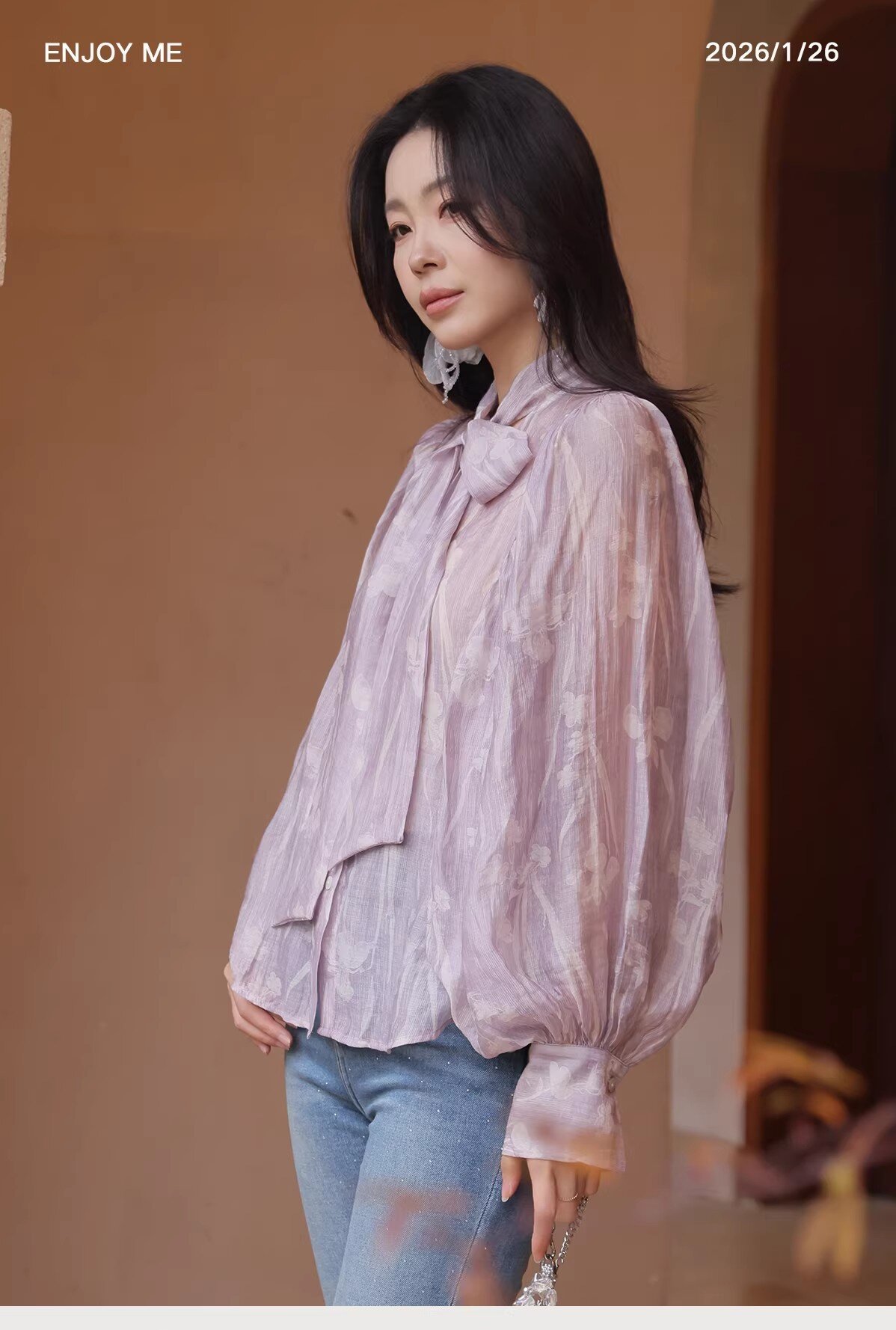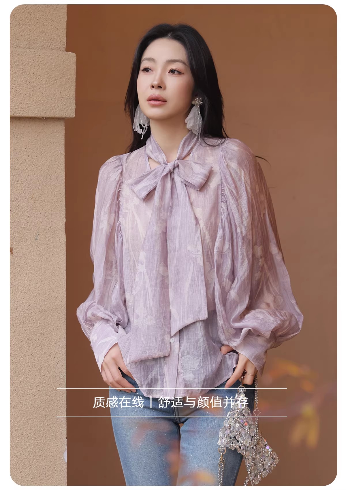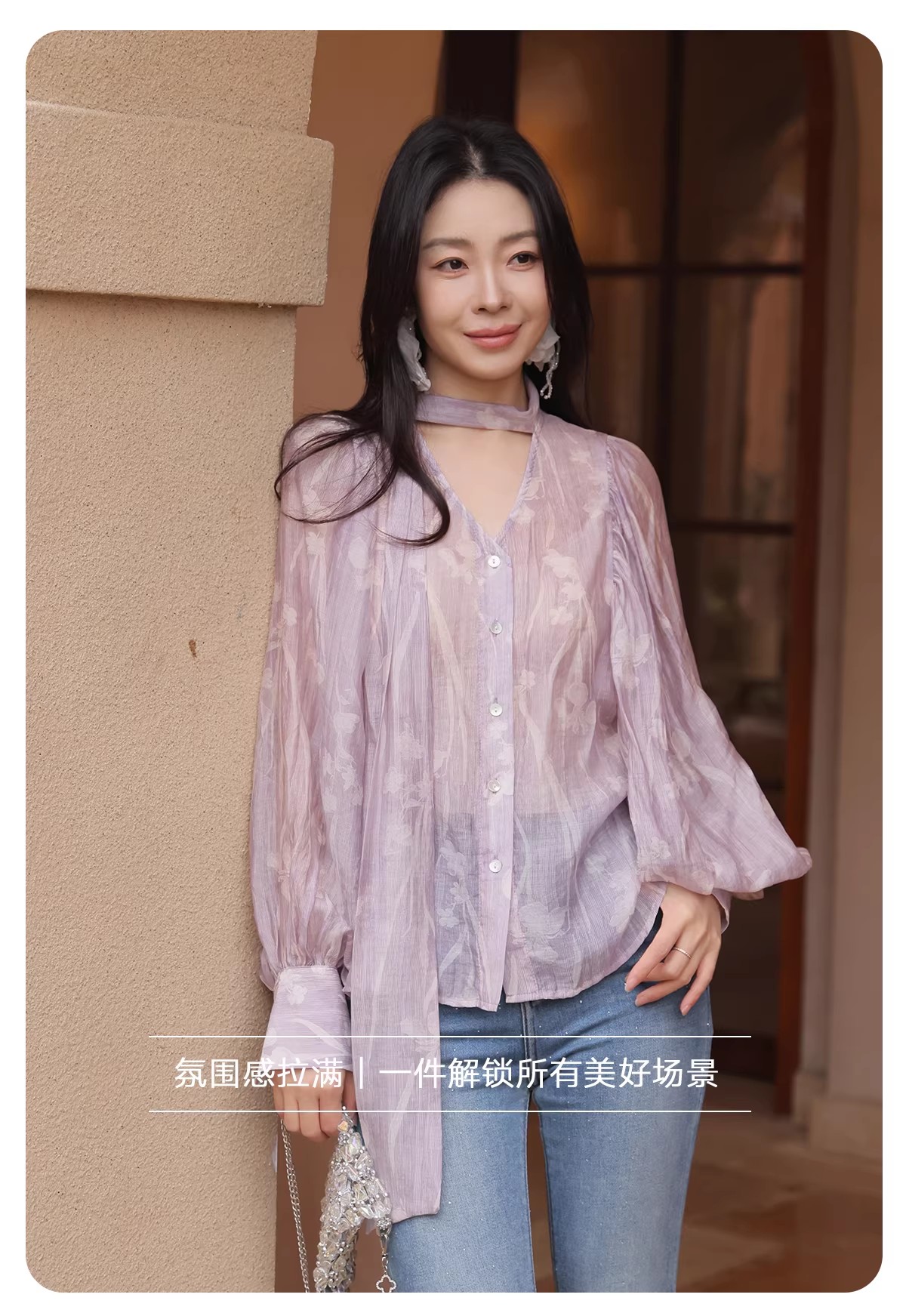 【门店同款】ENJOY春季“柔光芳序”挂脖飘带印花衬衫 169649489
