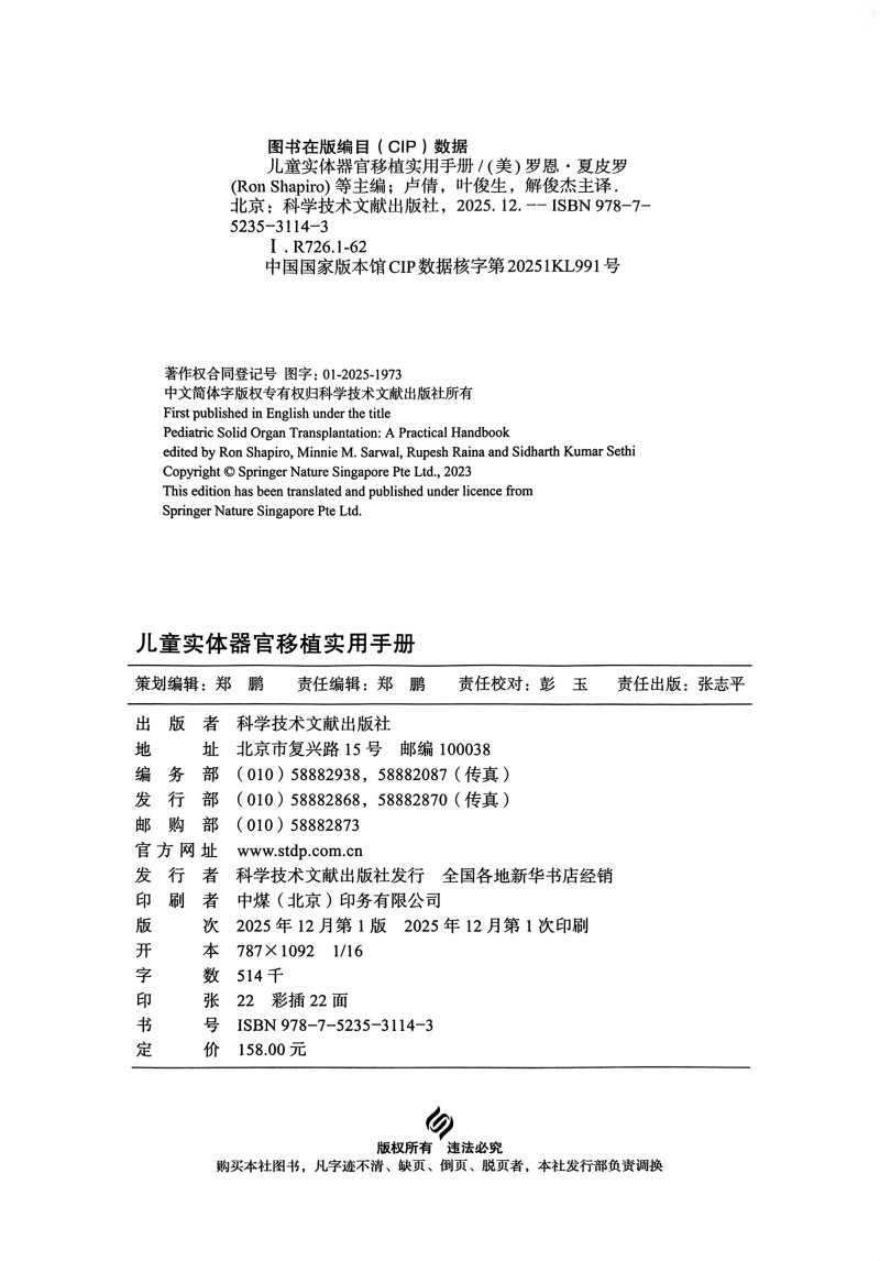 书名:儿童实体器官移植实用手册