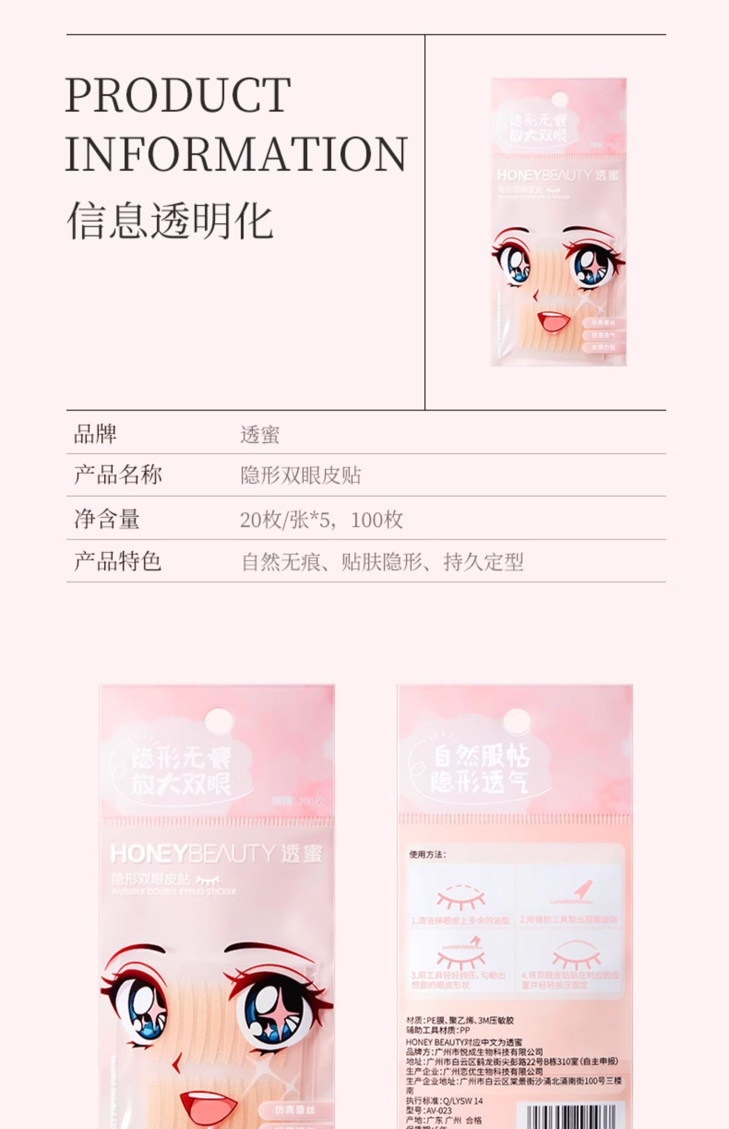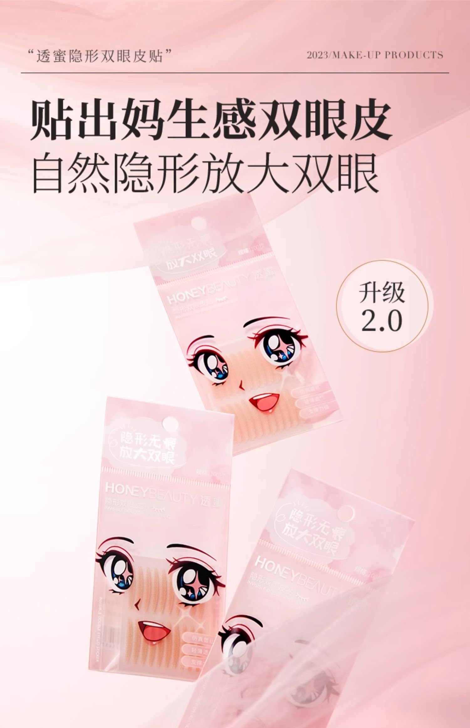 [双眼皮贴]【9.9元特价丨29.7元任选3件 | 单笔满59元送卡皮巴拉迷你收纳包】透蜜 隐形双眼皮贴100枚*2包(3件起购,拍下3件立减)