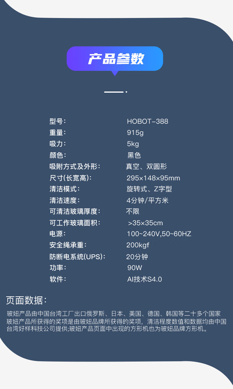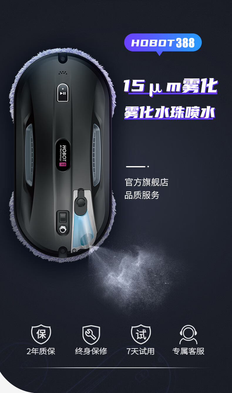 玻妞(HOBOT)388自动喷水旋转擦窗机器人玻妞擦玻璃机器人波妞擦窗机擦玻璃神器