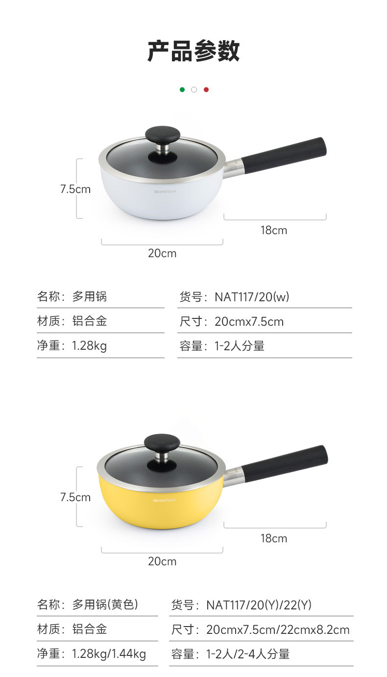 【净重】锅盖约0.45kg,锅身约0.85kg