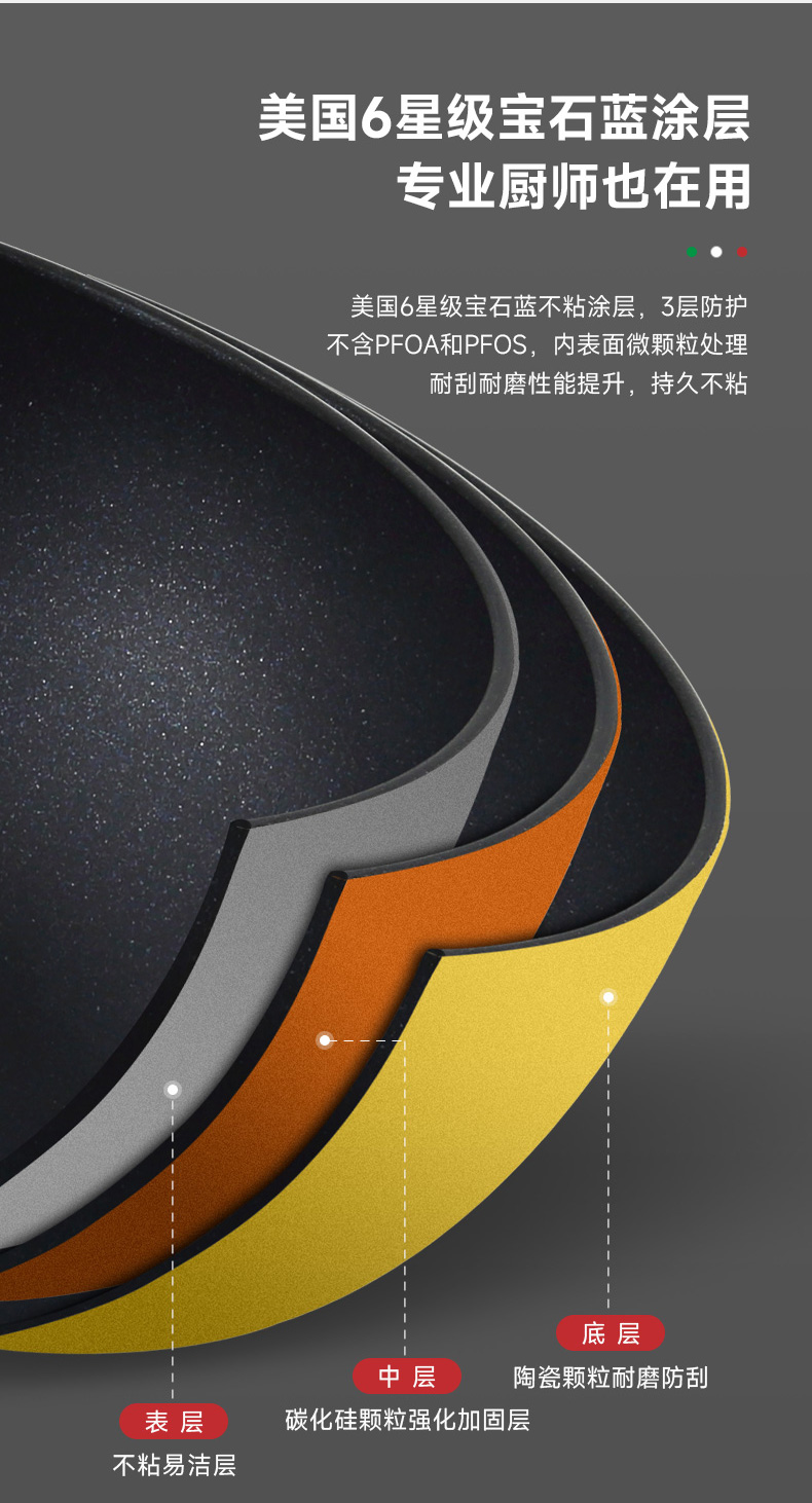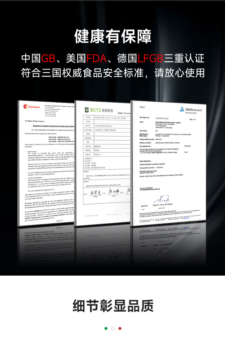 【材质】涂层-聚四氟乙烯、锅身-铝合金、锅盖-钢化玻璃、手柄-树脂