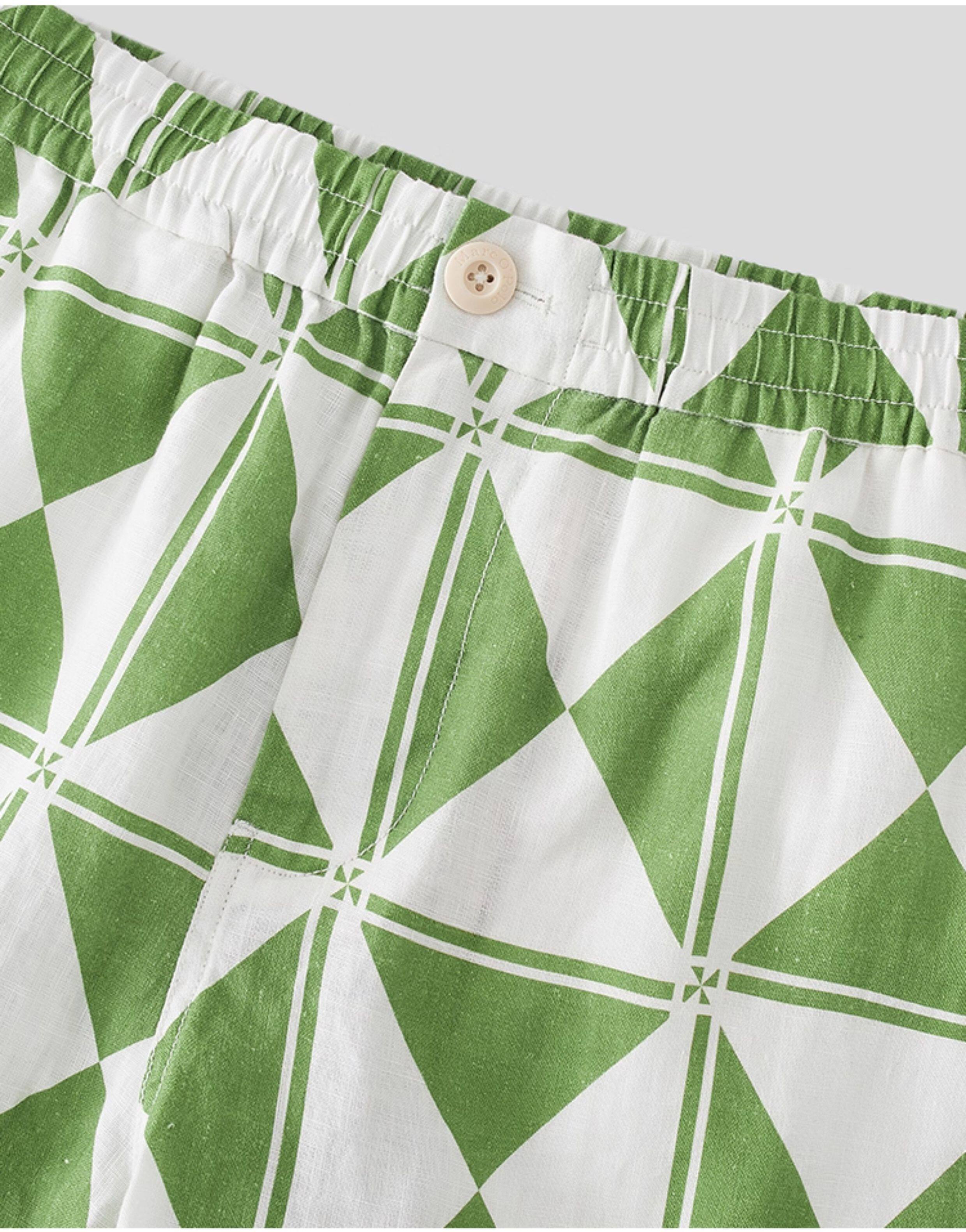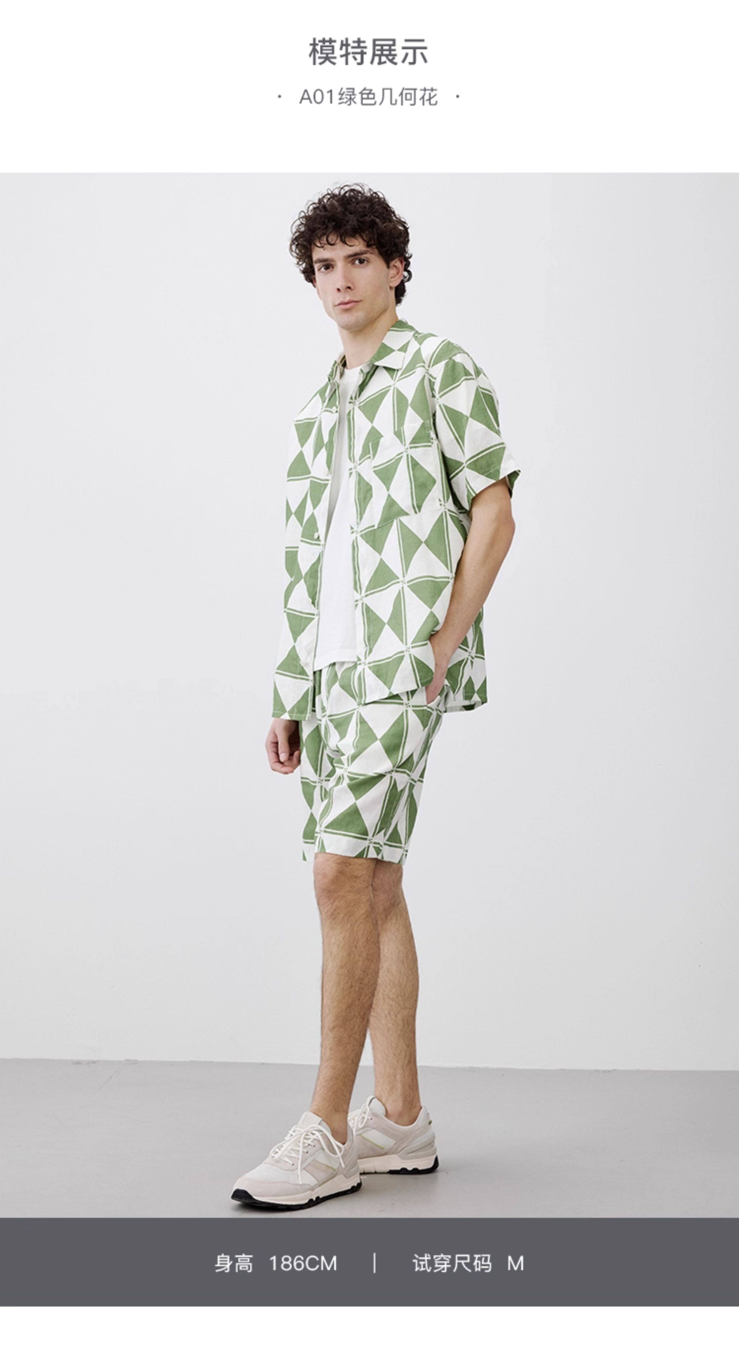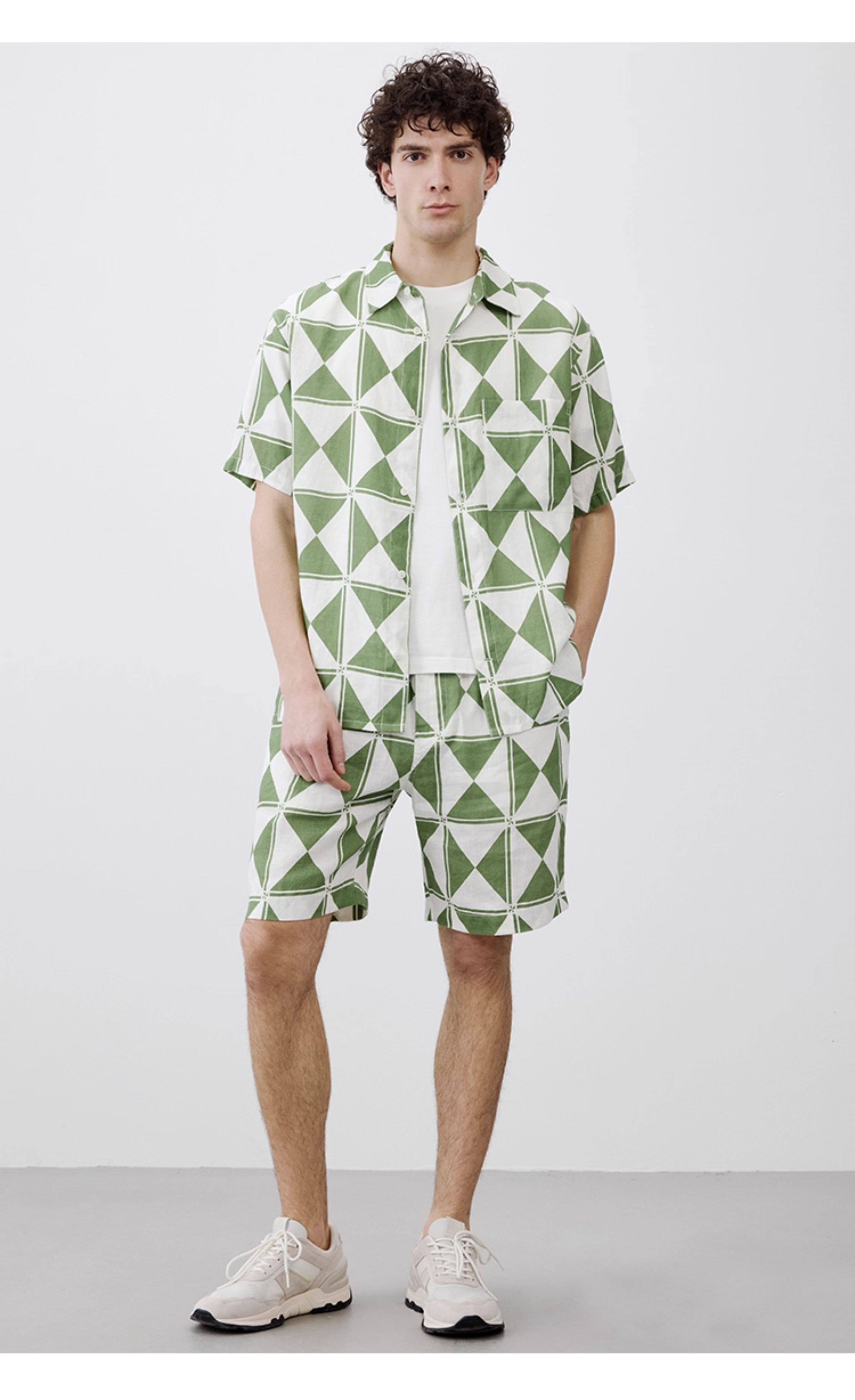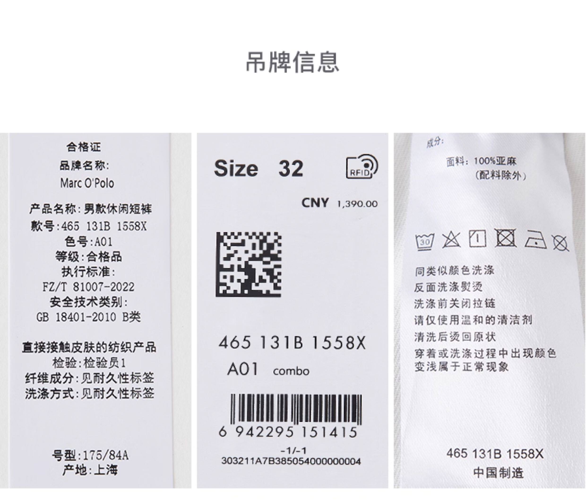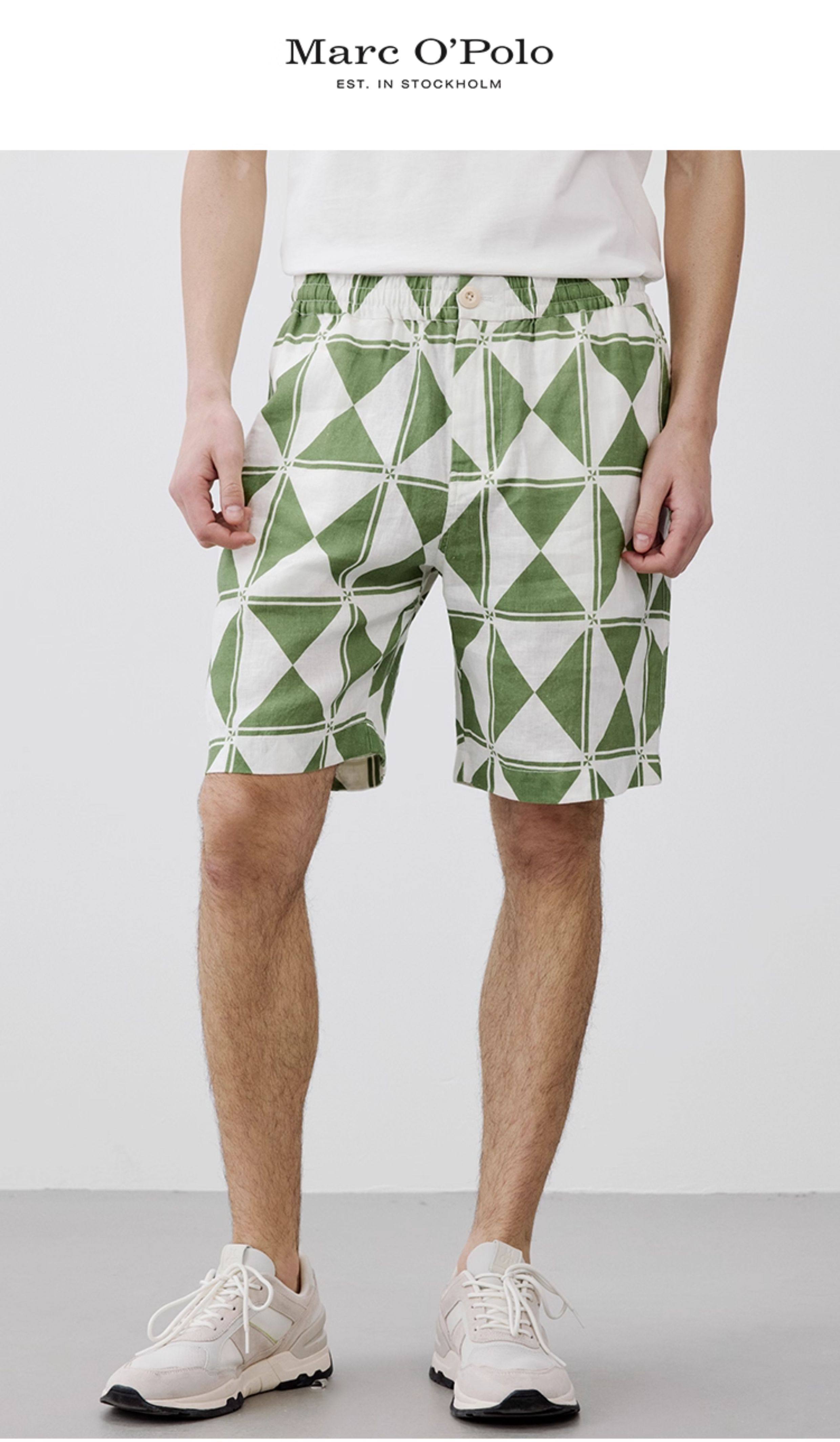 Marc O'Polo/MOP 夏季新款高级亚麻格子纹宽松透气五分休闲短裤男