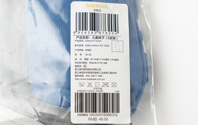 巴拉巴拉儿童袜子春季新款男童棉袜女童打底袜小中大童中筒五双装