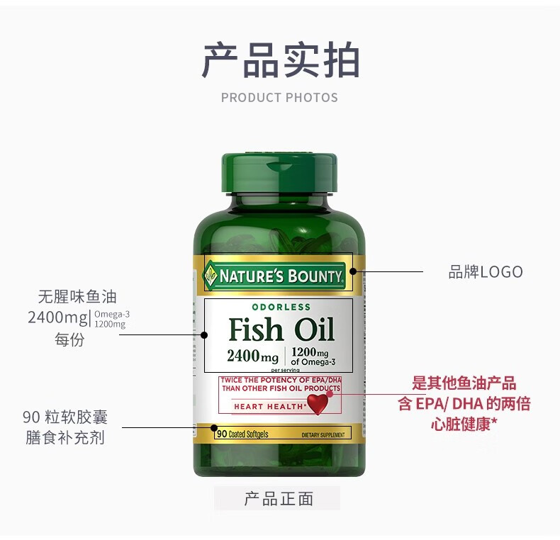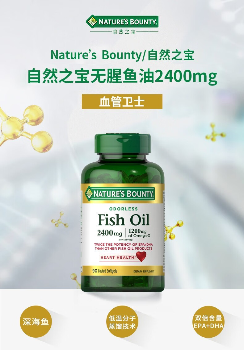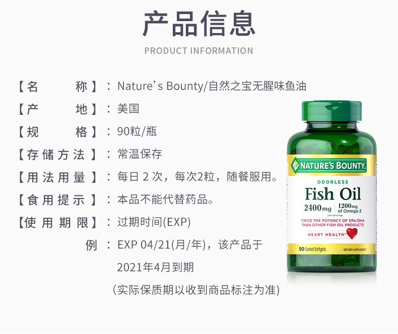 【含邮含税】Nature's Bounty自然之宝鱼油软胶囊90粒/瓶