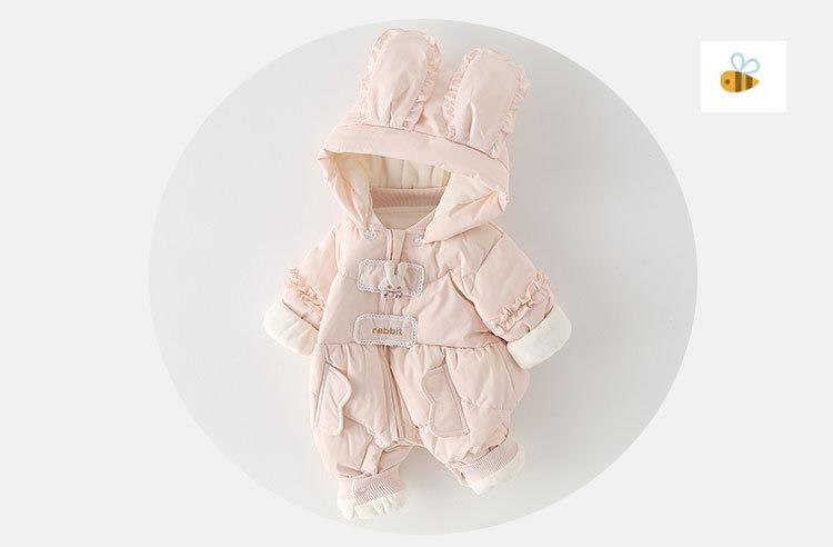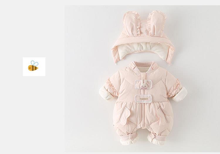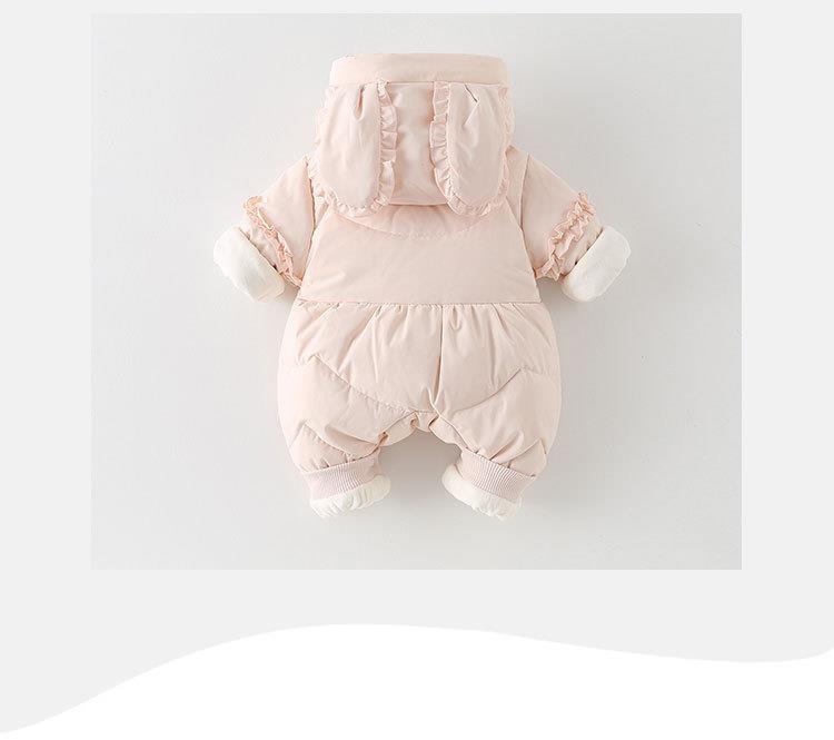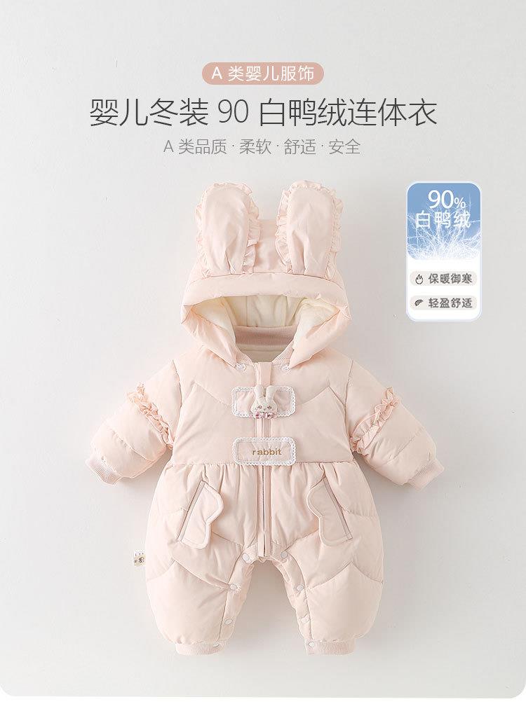 婴儿连体羽绒服白鸭绒2025新生儿连体衣女宝宝加厚保暖粉色爬服