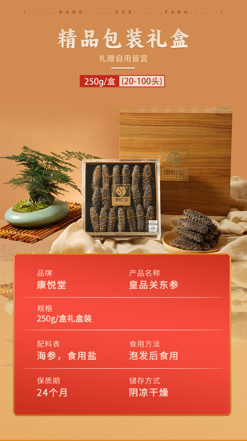 【康悦堂·皇品关东参】关东参 野生干参 20-70头/250g/盒 高泡发率