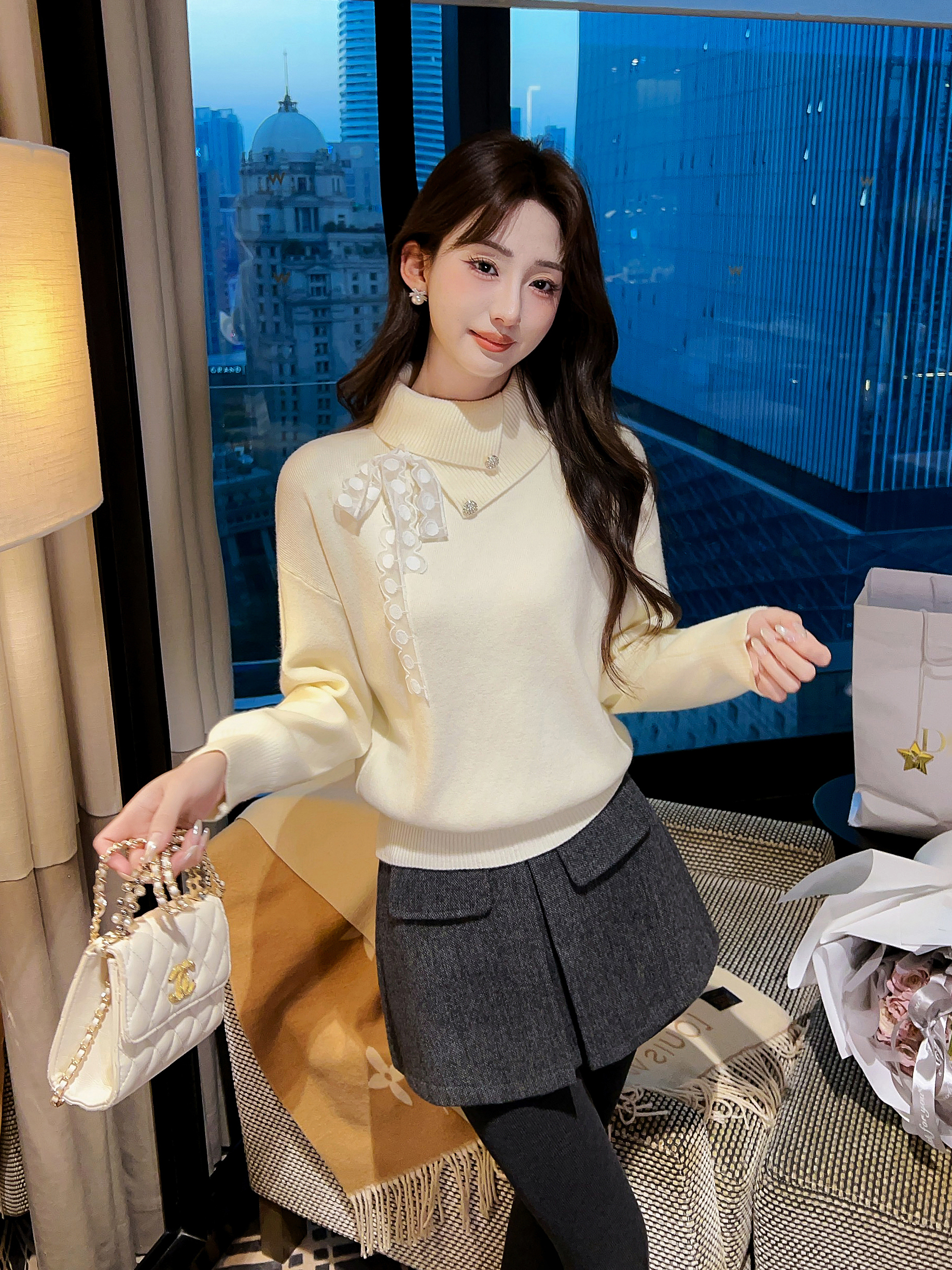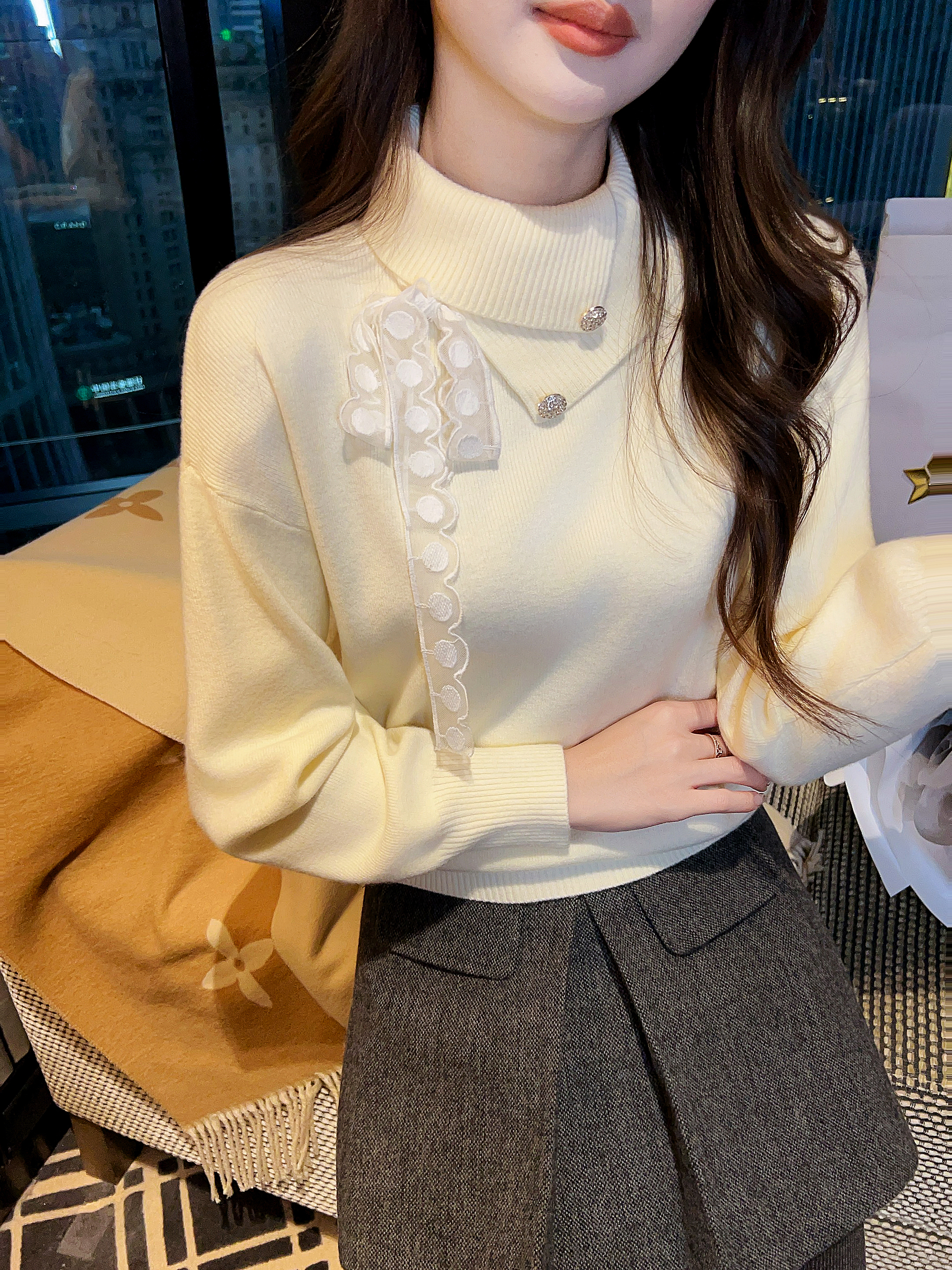 张心子【温莎古堡】半高领保暖翻领毛衣 U2602022