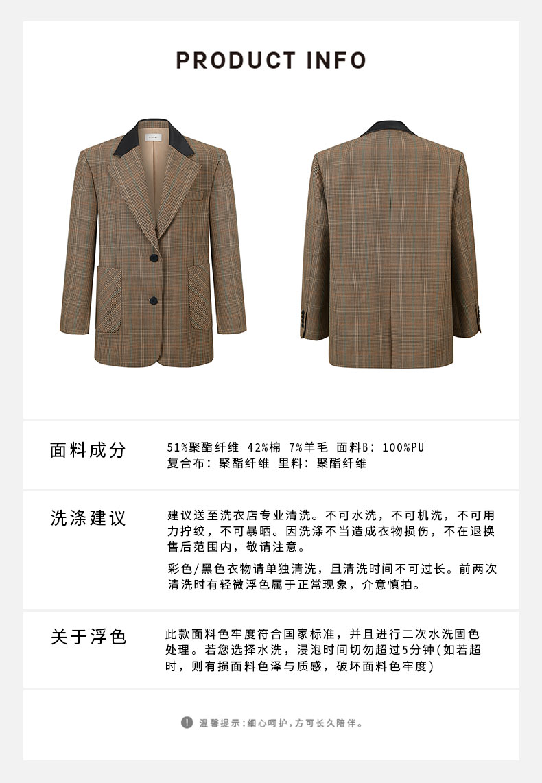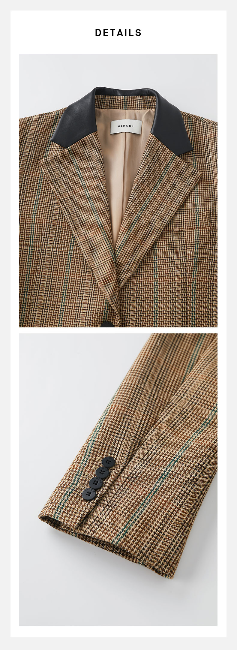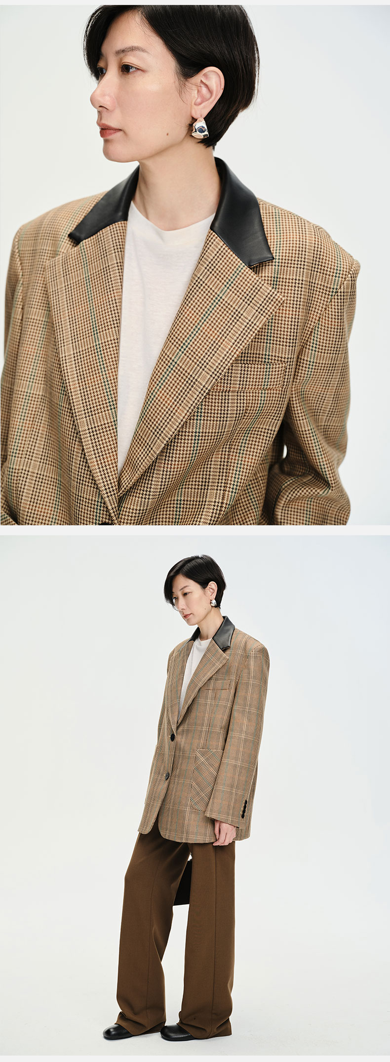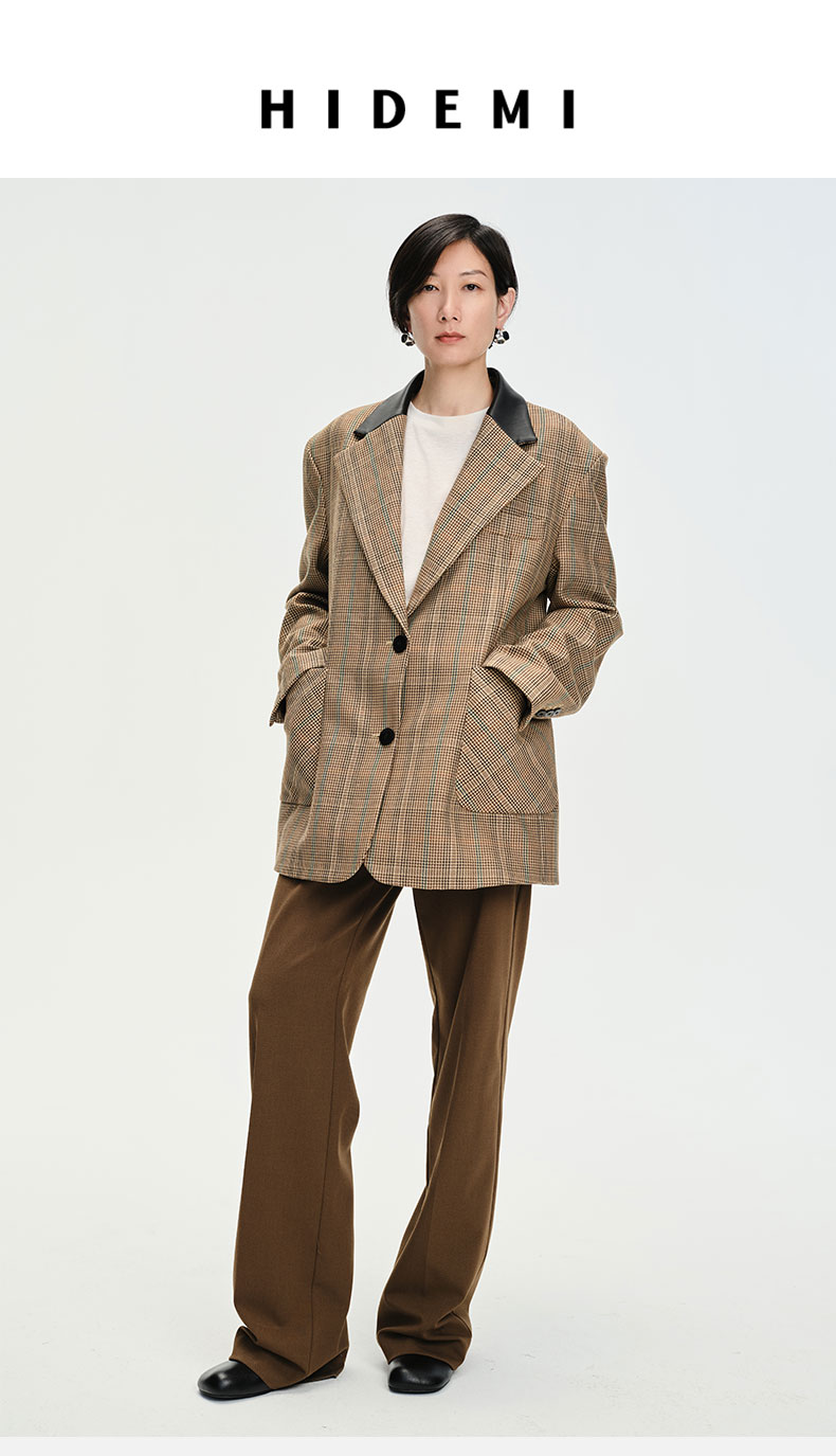 HIDEMI 格纹色织羊毛皮领拼接廓形极简西装