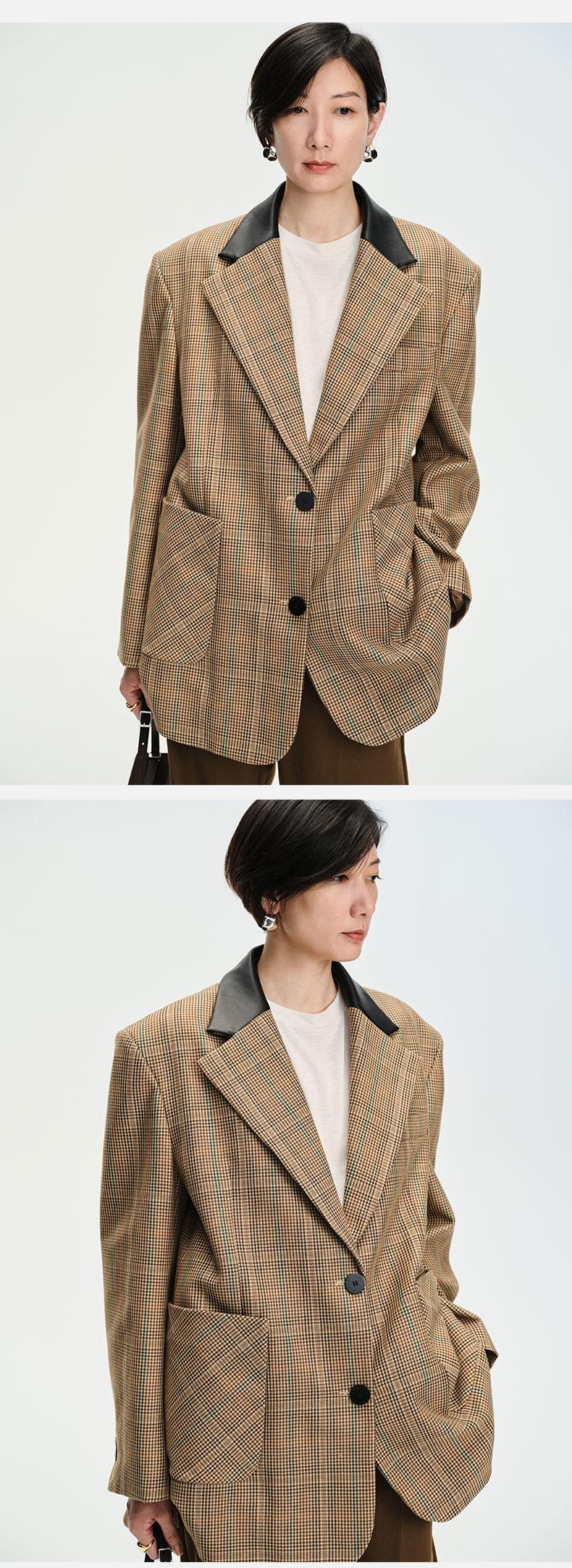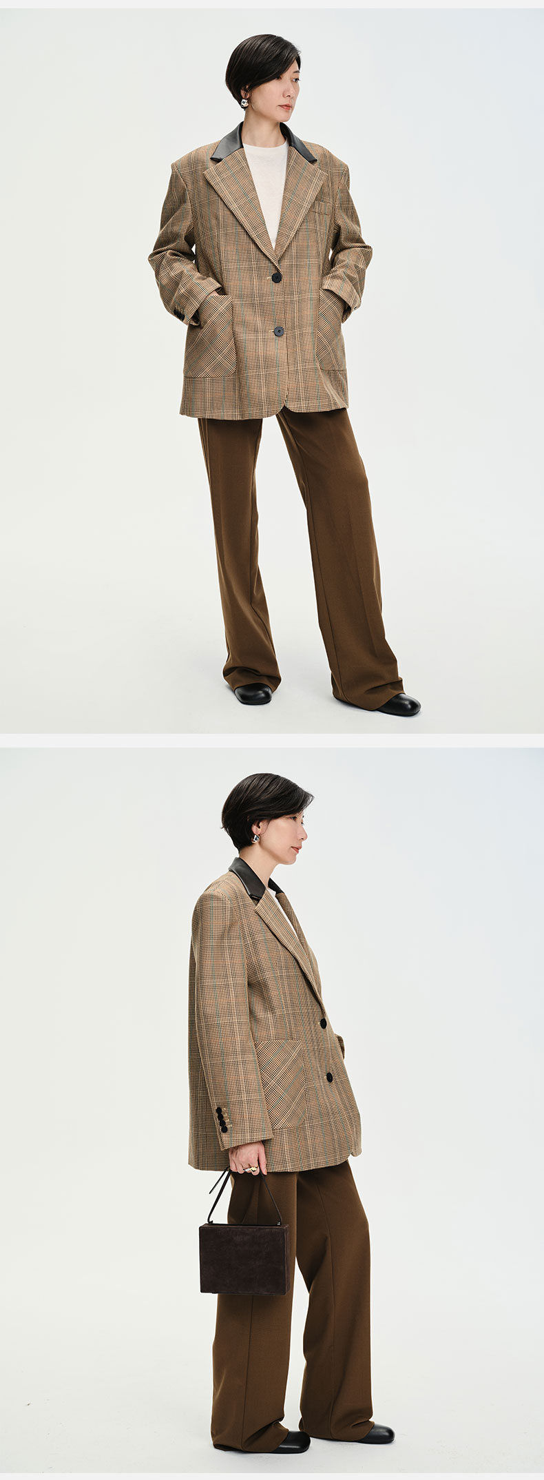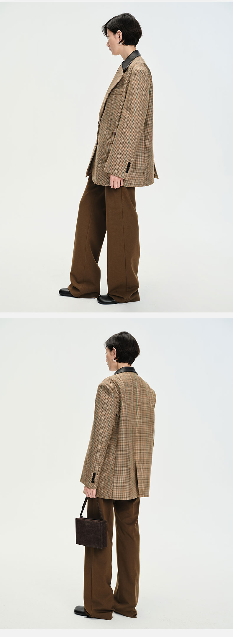 HIDEMI 格纹色织羊毛皮领拼接廓形极简西装