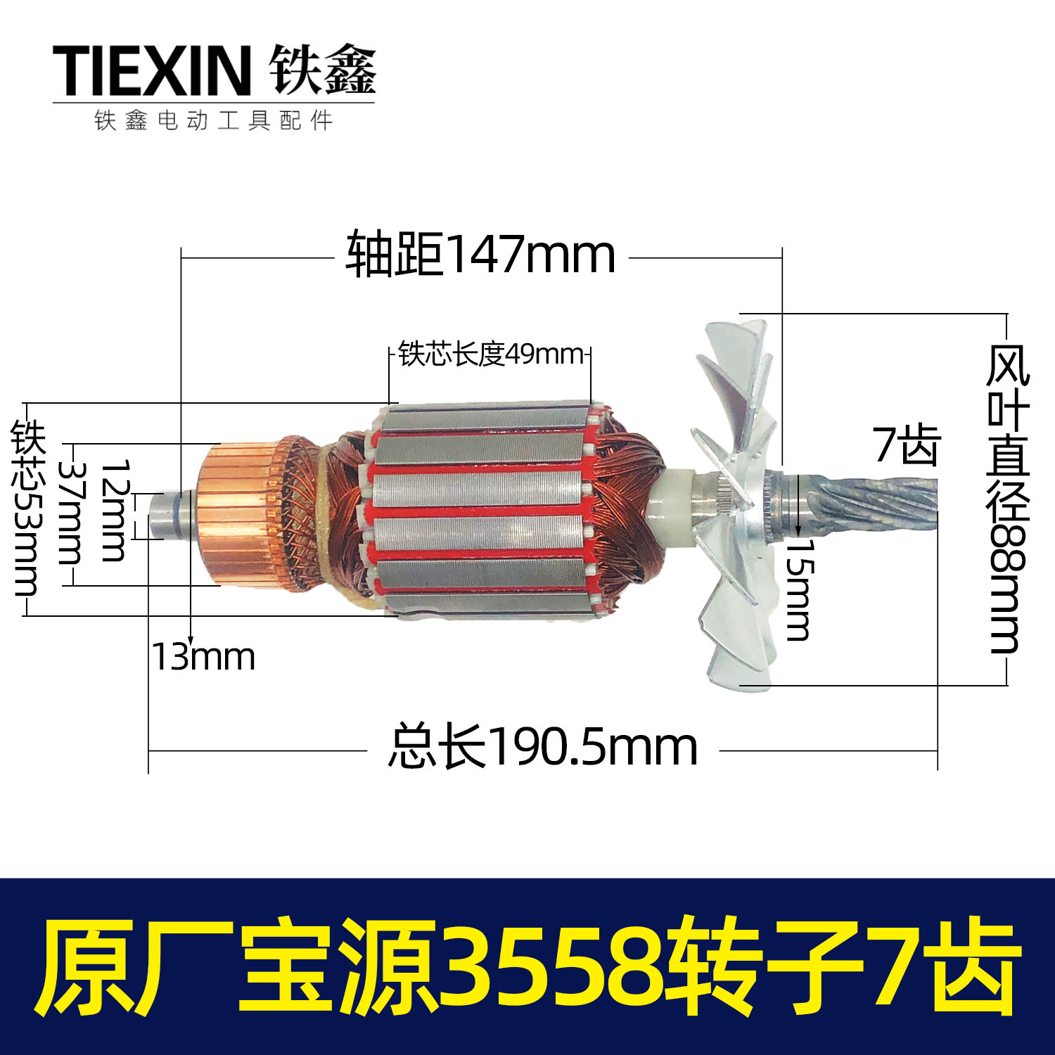 【货号07312】原厂宝源3558钢材机转子钢材机电机350切割机转子7齿