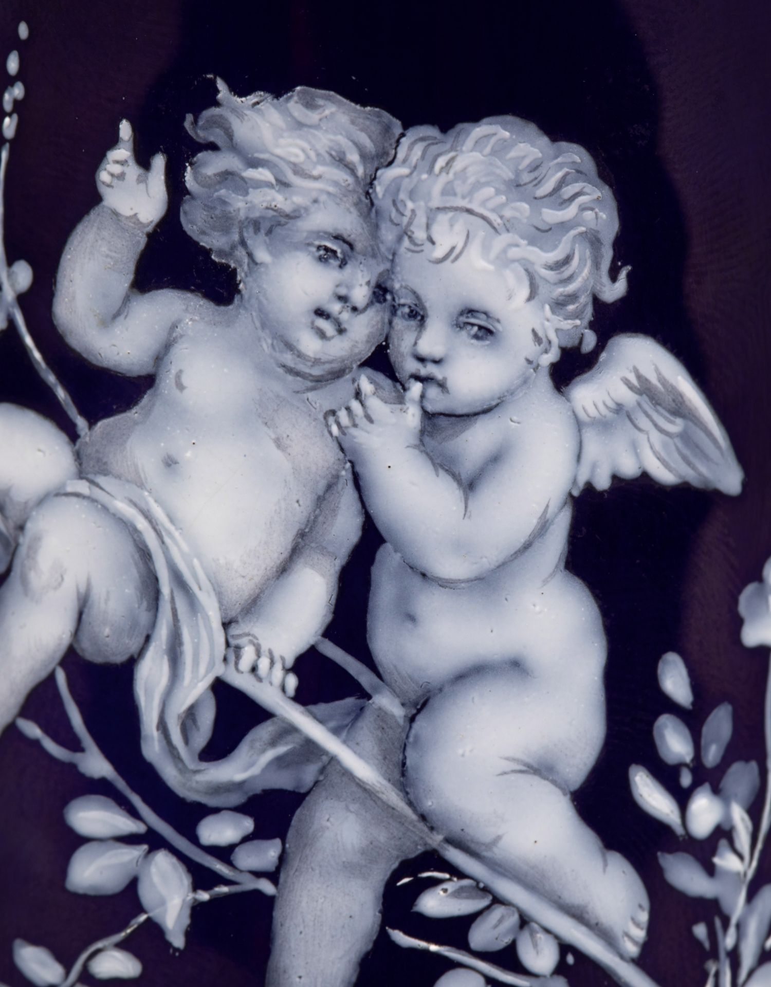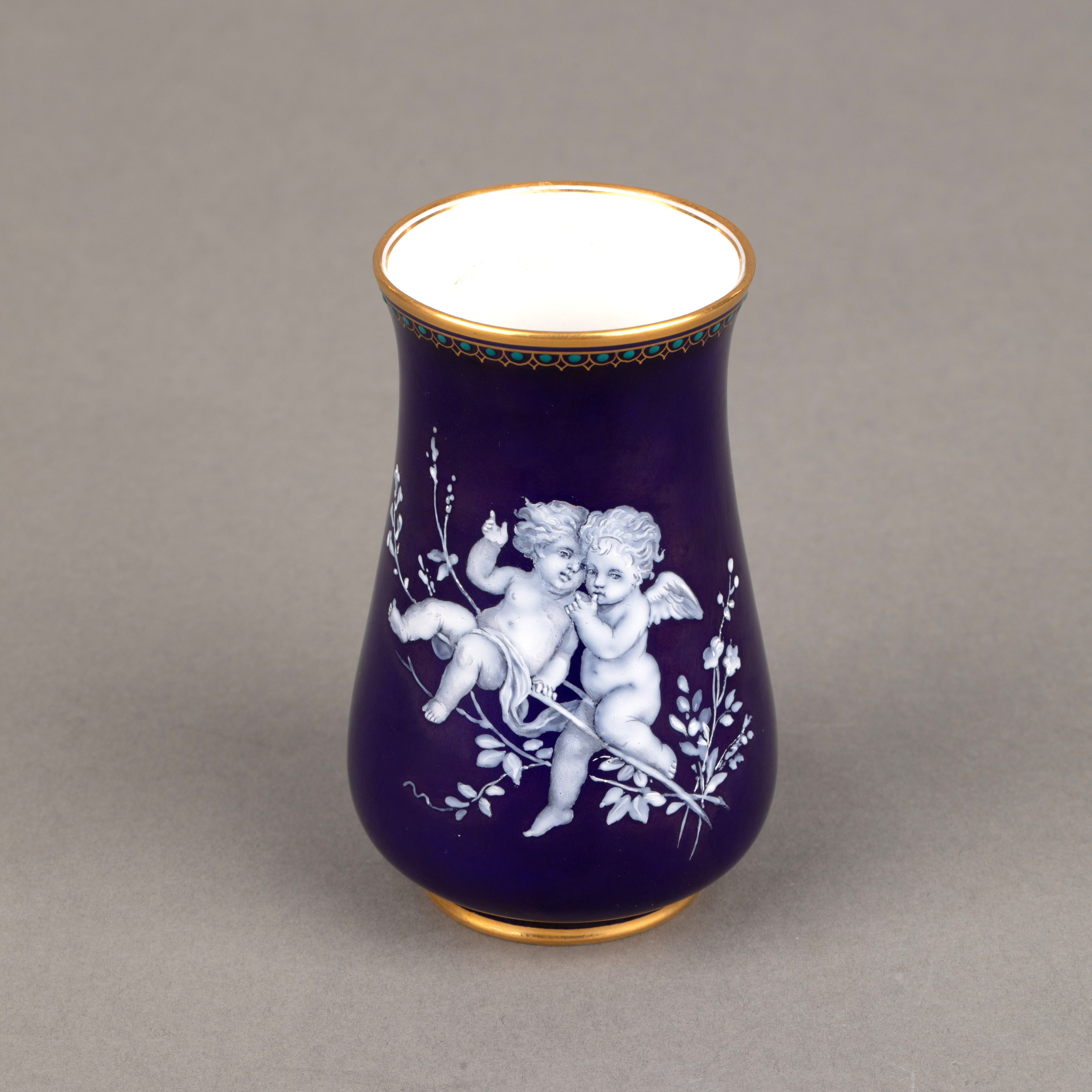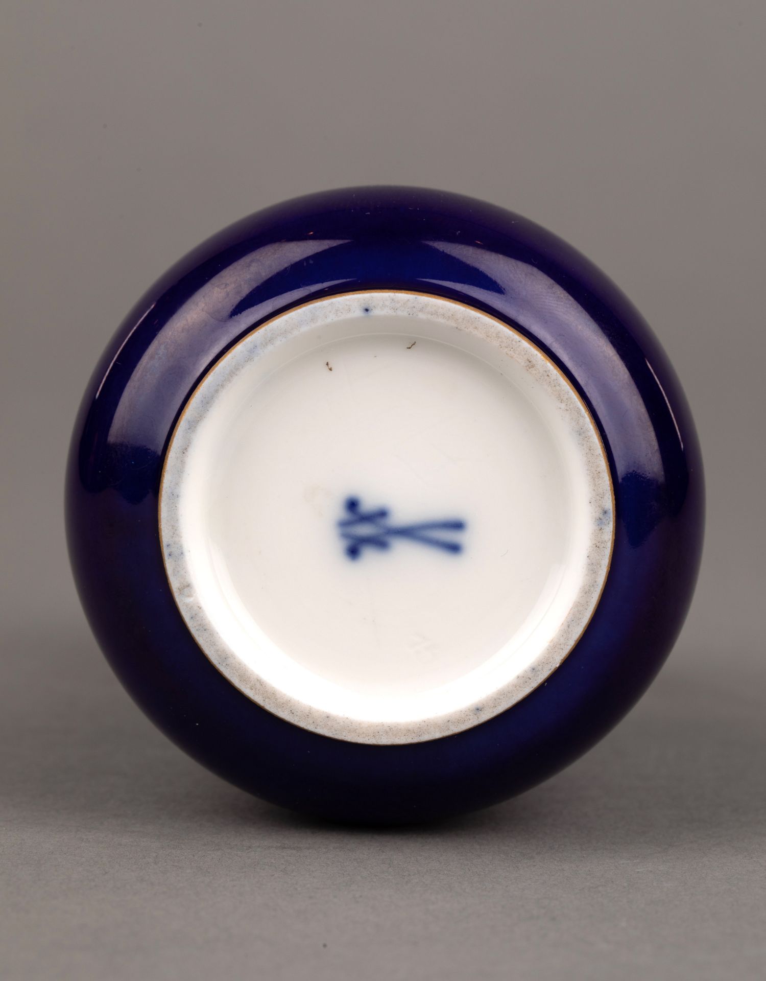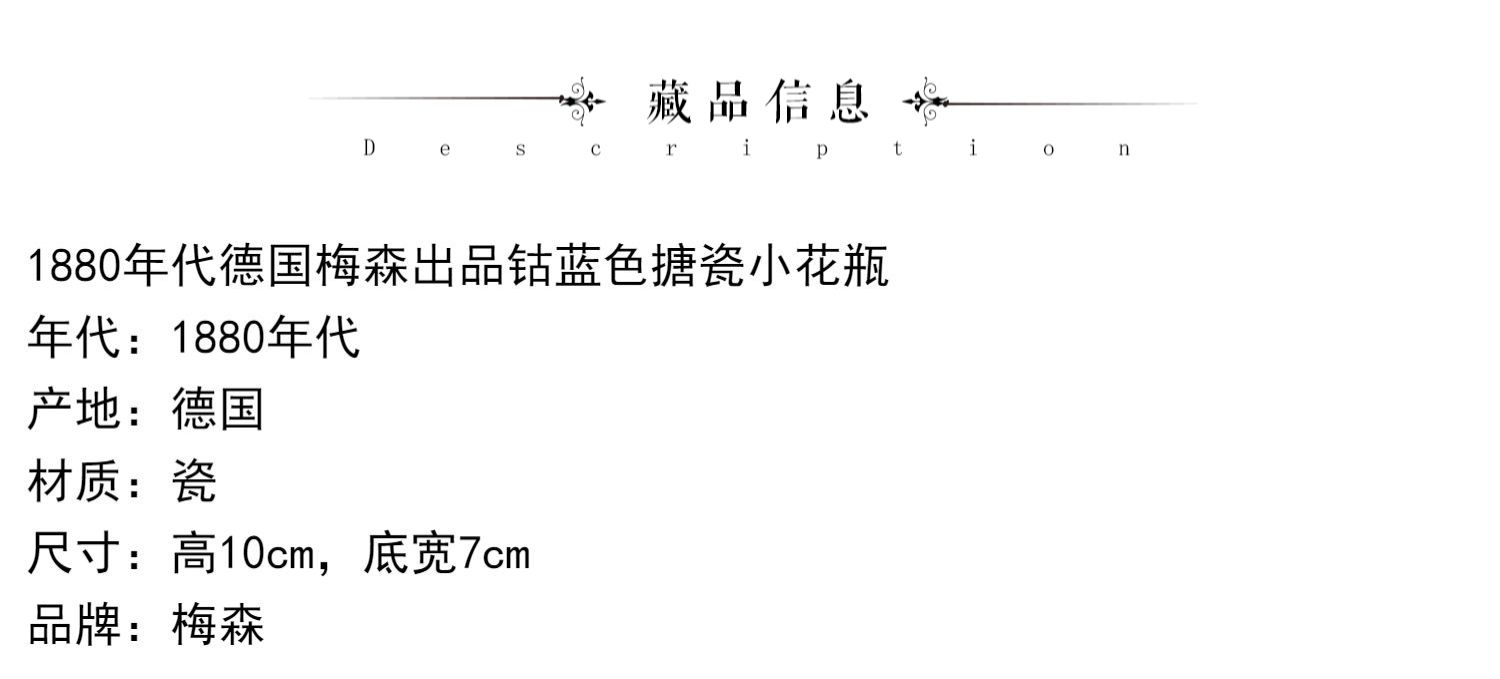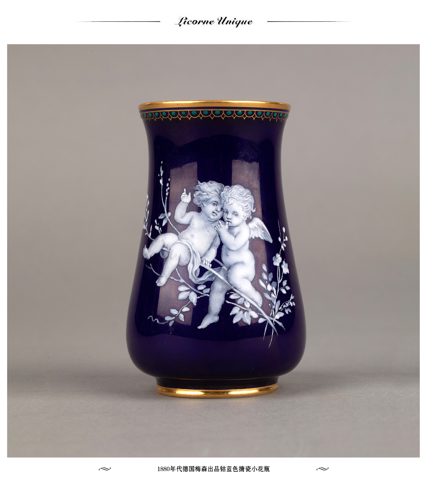独角鹿西洋古董摆件1880年代德国梅森出品钴蓝色搪瓷小花瓶