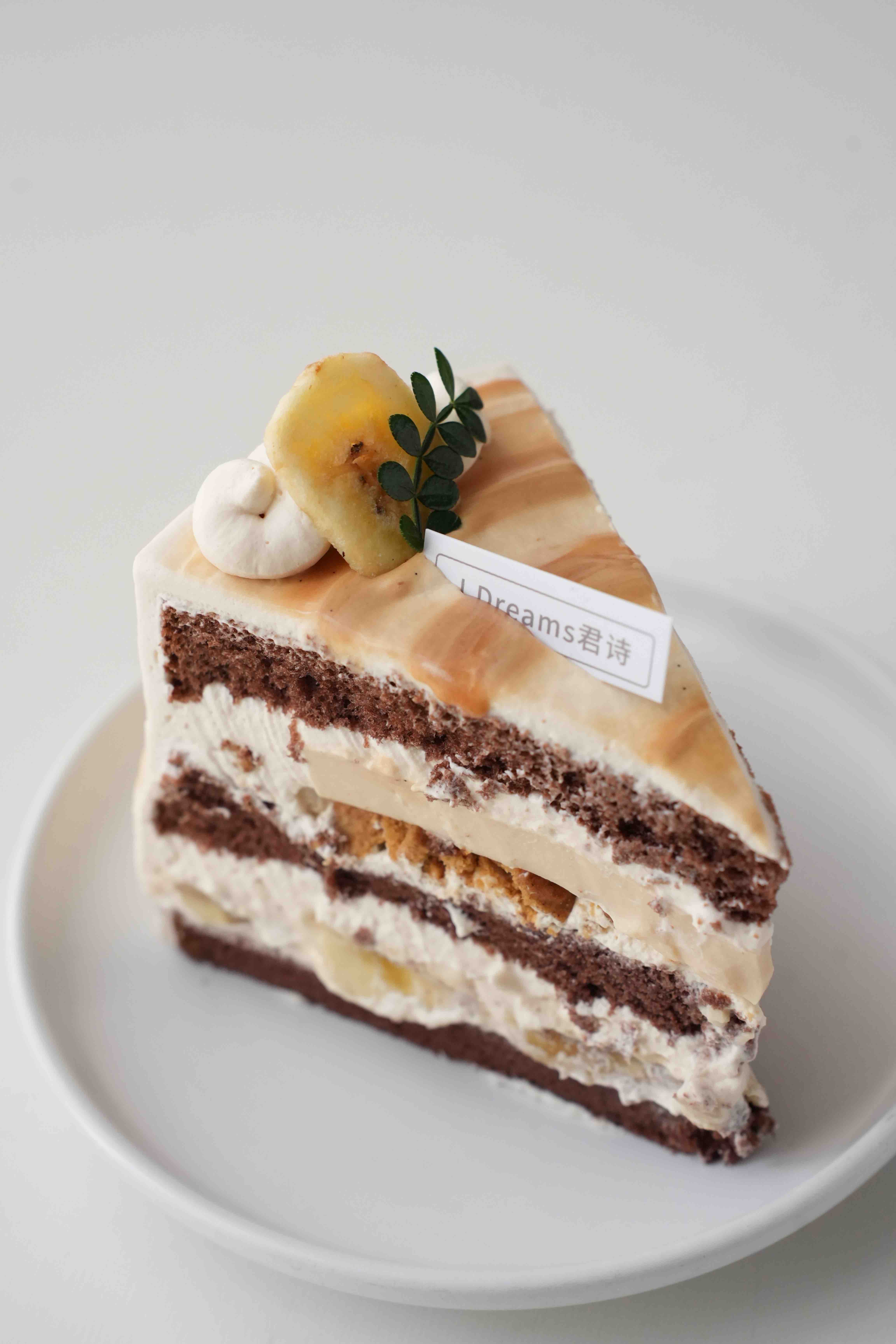 我们终于调好这款香甜不腻的焦糖香蕉蛋糕啦!上新前试吃就被店里的小伙伴抢光了!Q弹的焦糖奶冻、焦糖饼干碎、软糯香蕉、丝滑奶油配上蓬松可可戚风,层层都有惊喜,超上头!爱焦糖的朋友一定要来尝尝!