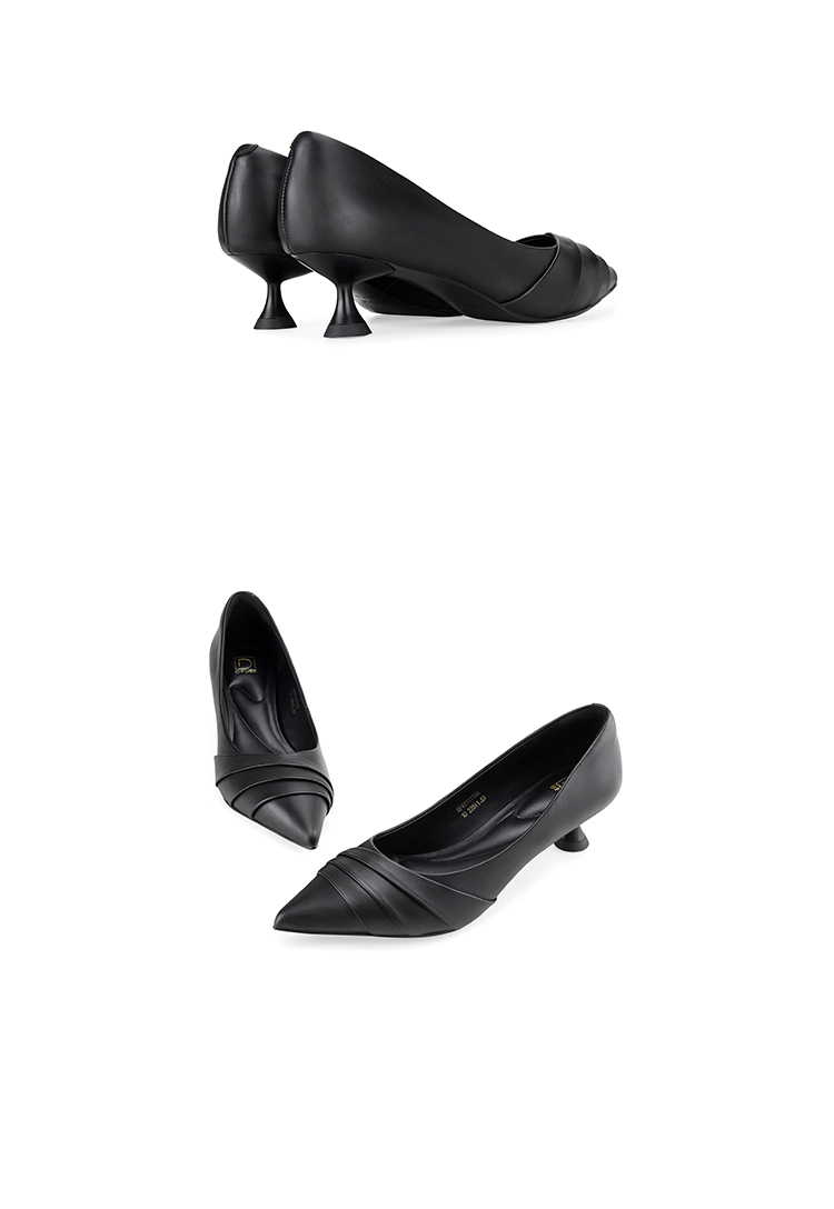 D:FUSE迪芙斯2024秋季新款简约小猫跟单鞋手工褶皱纯色真皮高跟鞋通勤鞋DF43111166