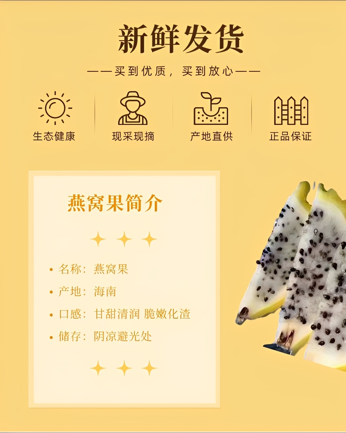 果岭菁礼 海南燕窝果现摘现发香甜多汁果肉细腻水果送礼礼盒 顺丰包邮