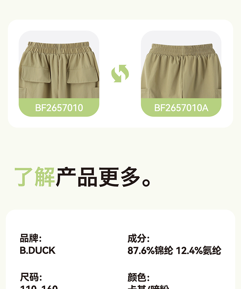 B.Duck小黄鸭童装夏季男女童休闲裤110-160 BF2657010