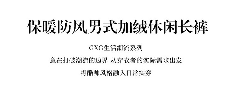 GXG男装【加绒保暖】冬季简约舒适百搭宽松直筒男式休闲裤K&C