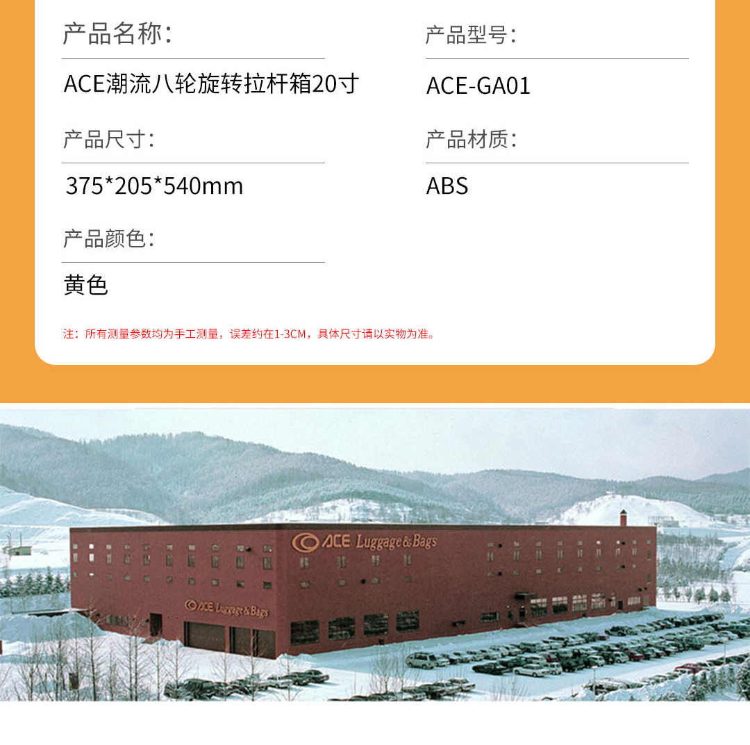 【下单前请备注颜色】ACE潮流八轮旋转拉杆箱20寸 ACE-GA01