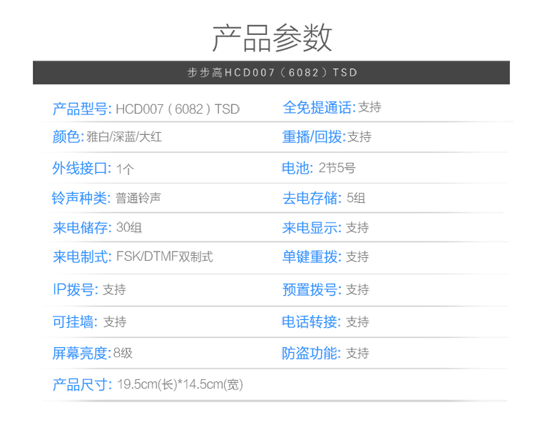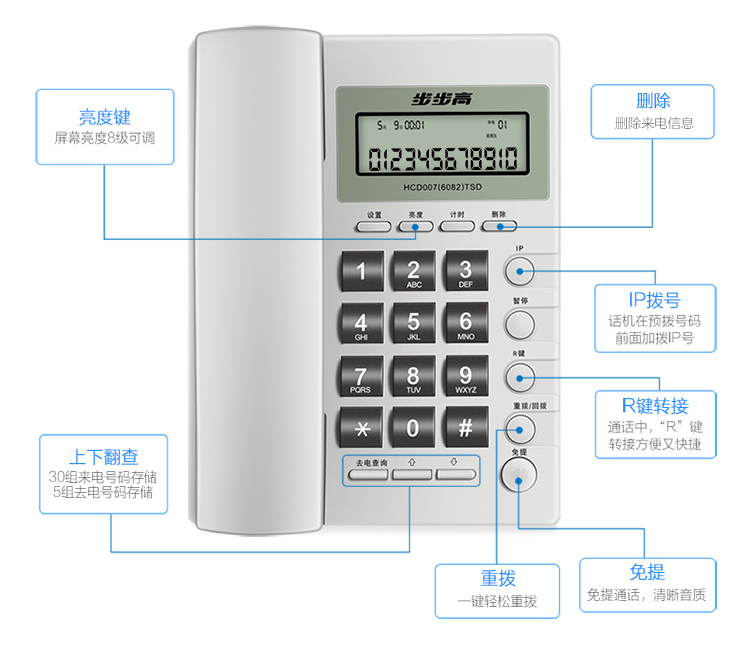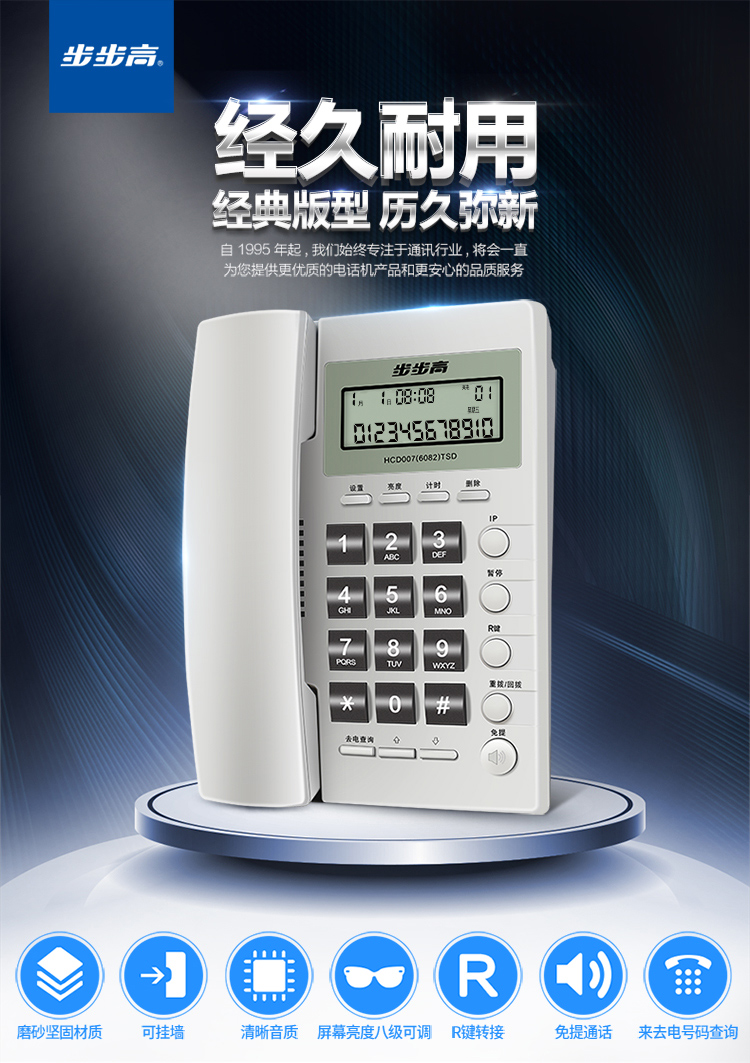 步步高(BBK)电话机座机 固定电话 办公家用 经久耐用 座式壁挂式双用 HCD6082雅蓝