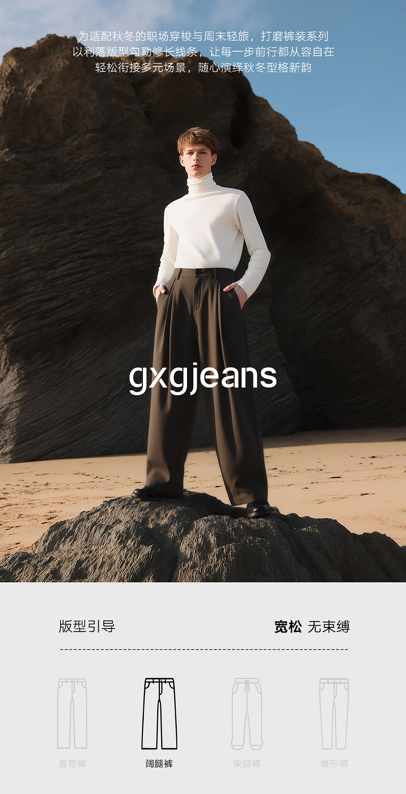 gxg.jeans男装 明线设计简约休闲宽松牛仔长裤男士 25年秋热卖
