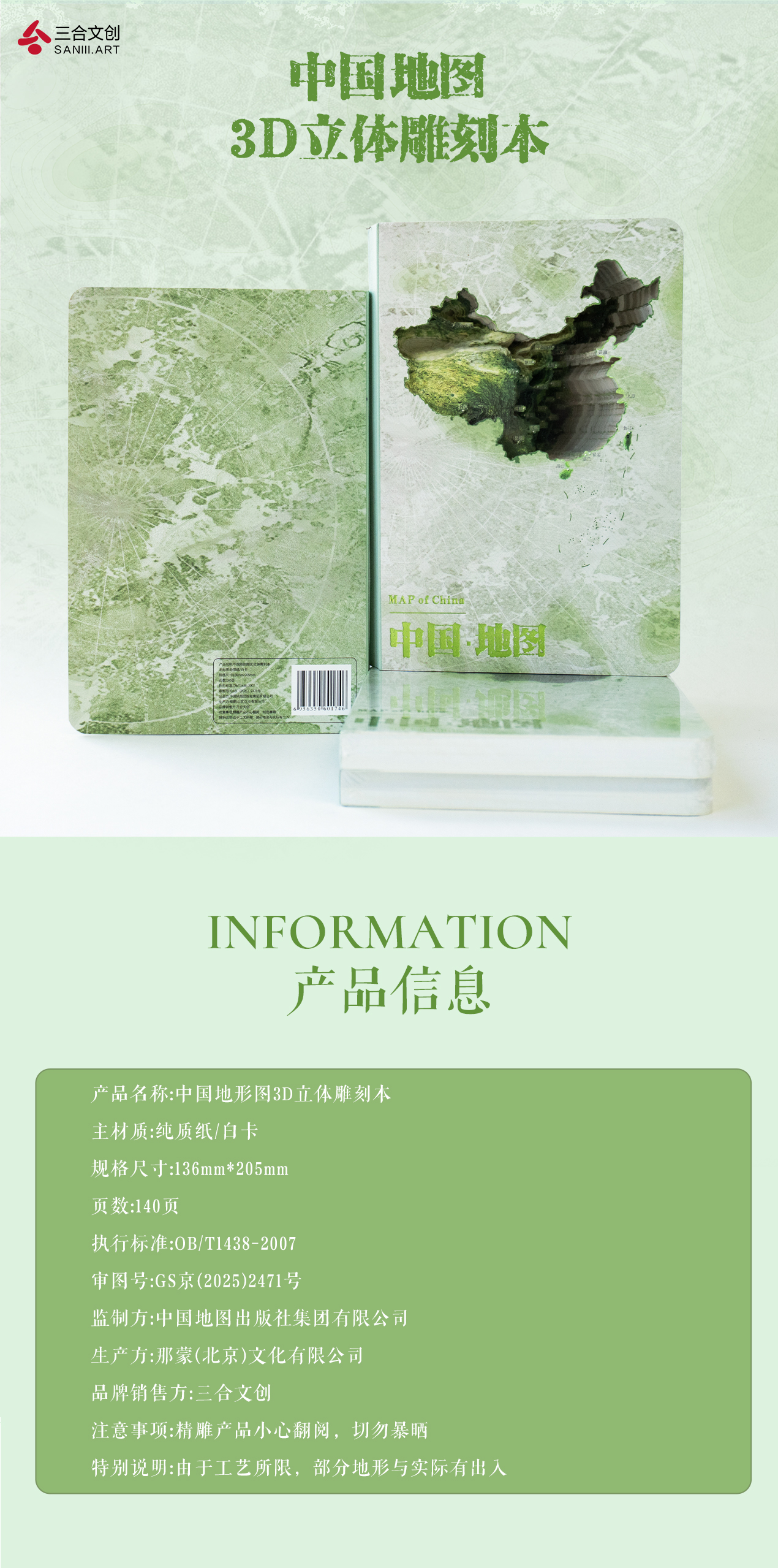 中国地形图3D立体雕刻本