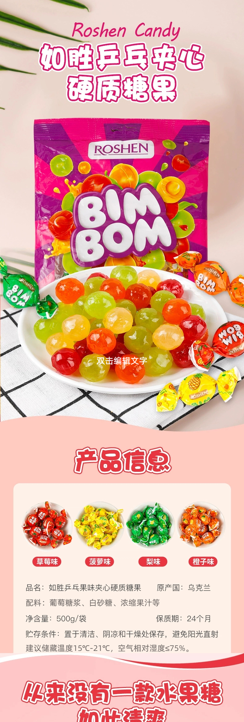 乌克兰进口如胜乒乓果味夹心硬质糖果500g