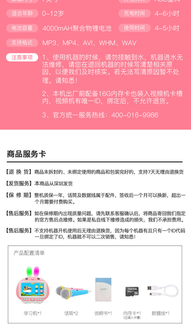 MXM7寸触屏学习平板双话筒卡拉OK触摸屏护眼点读机16G