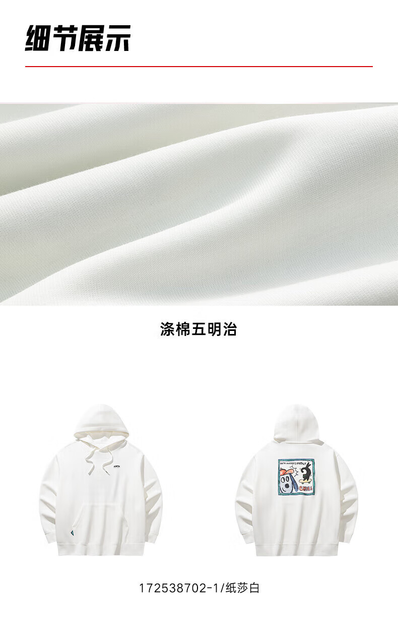 安踏(ANTA)卫衣中性套头衫新款连帽套头百搭简约运动休闲上衣内搭172538702 纸莎白-1
