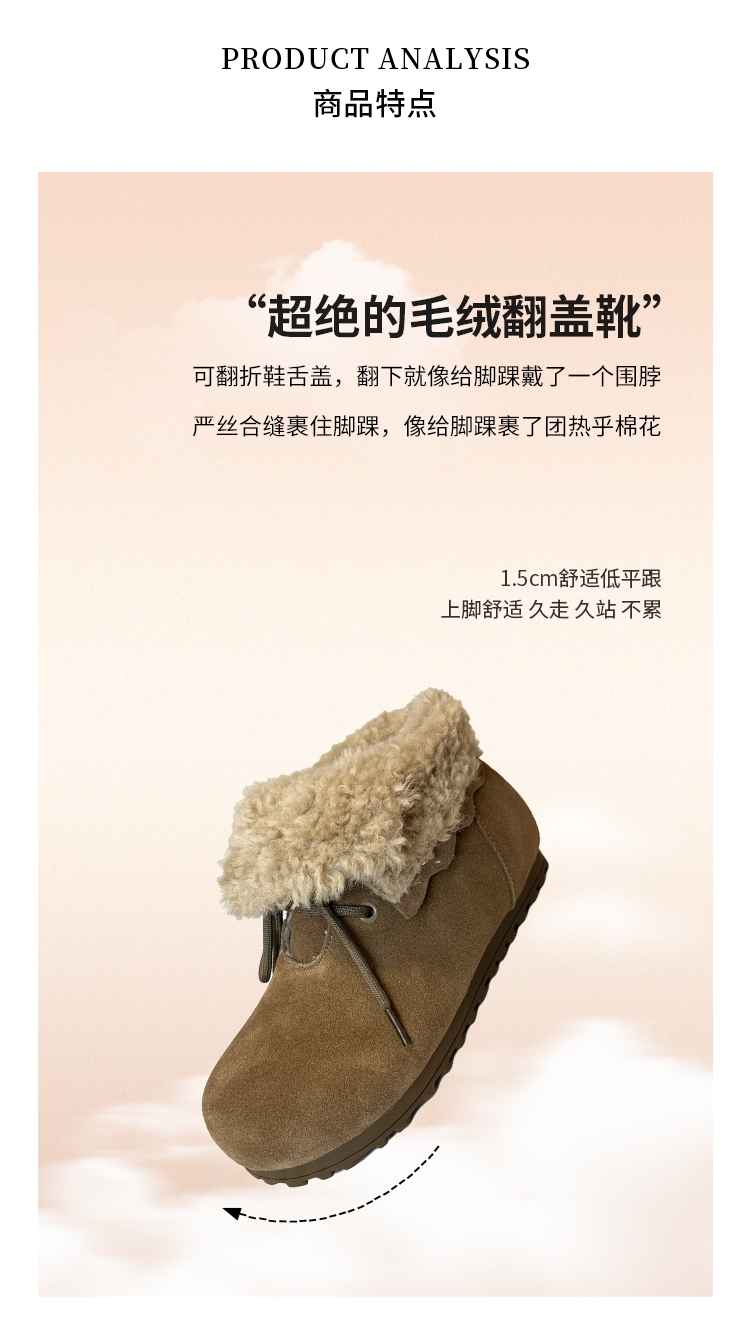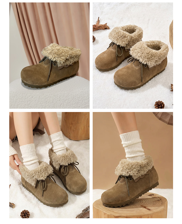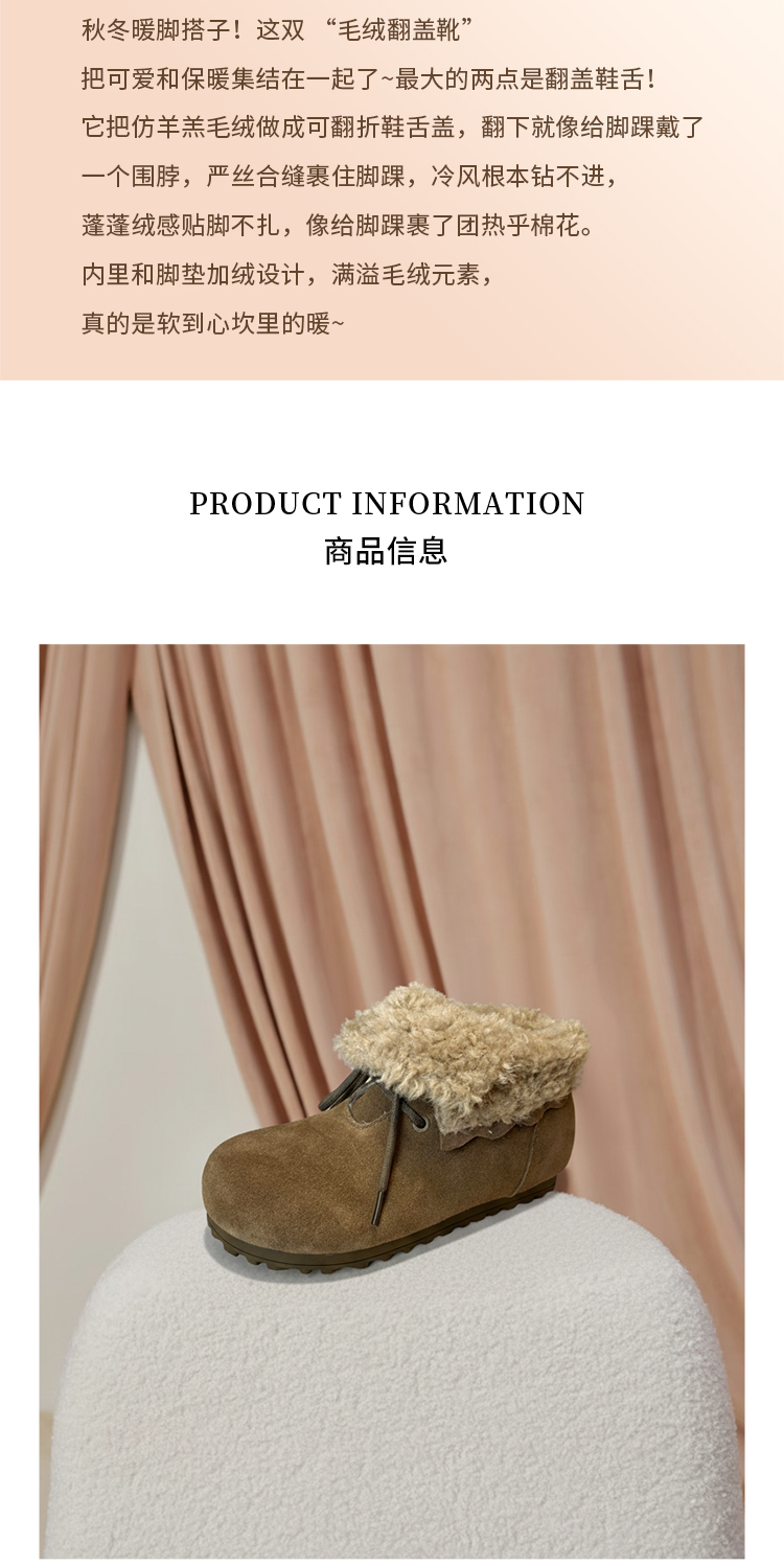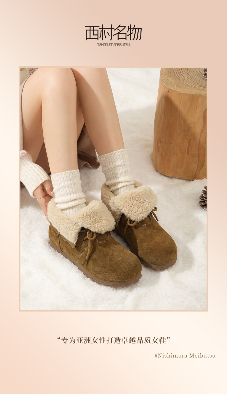【厚绒保暖】西村名物2025年冬季新款厚底防滑毛绒内里舒适保暖毛毛鞋T25DS40031