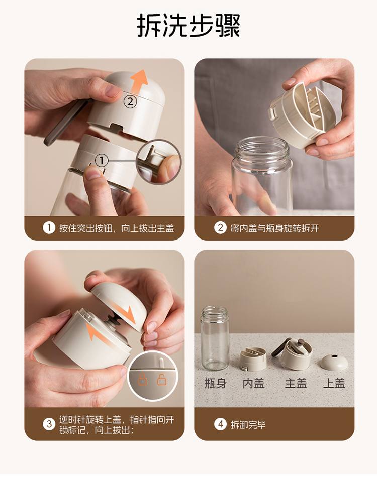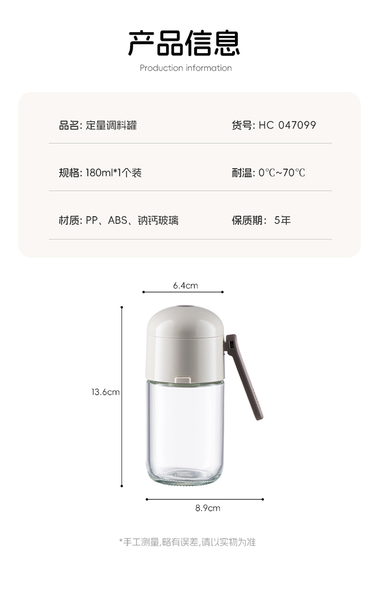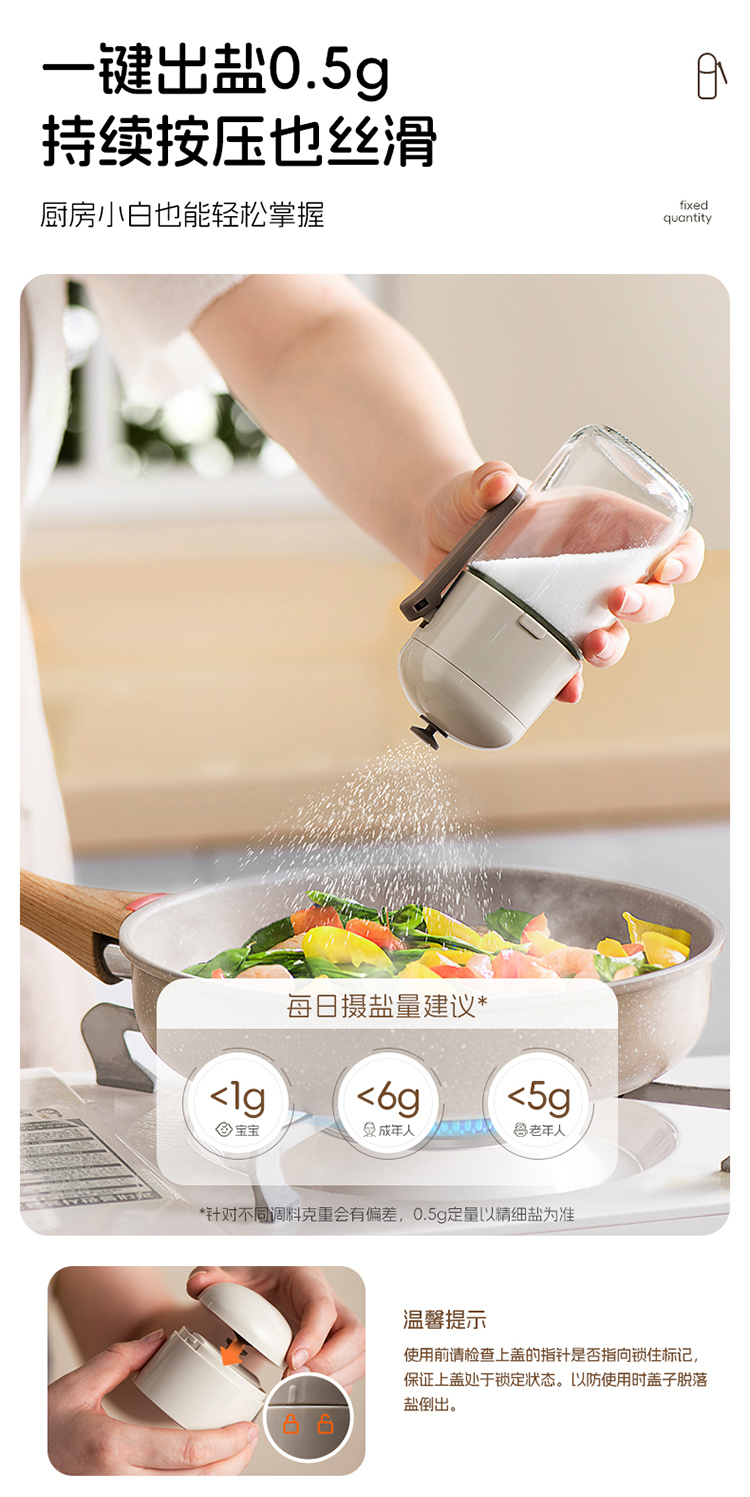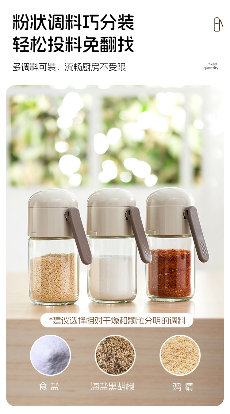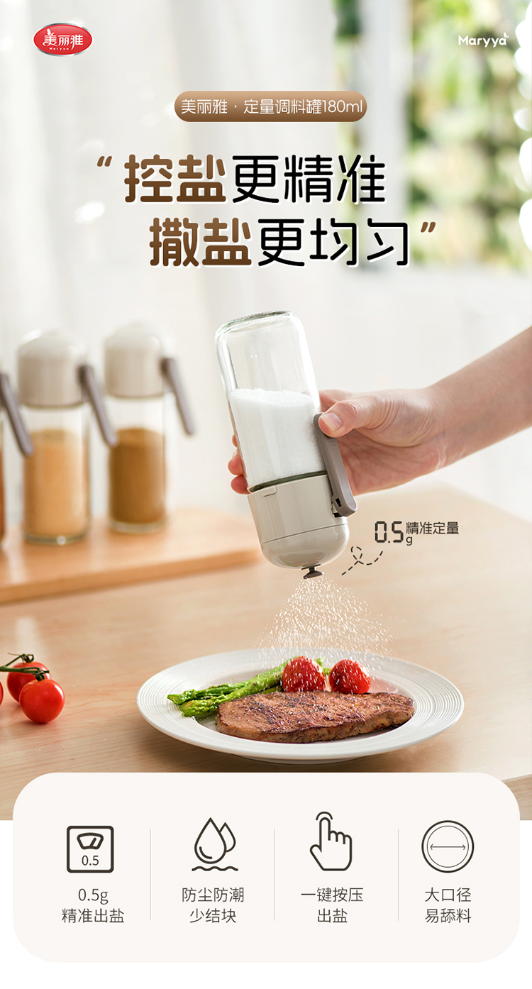 美丽雅调料罐定量调味盒厨房防潮盐瓶密封玻璃收纳盒 180ML*1个装