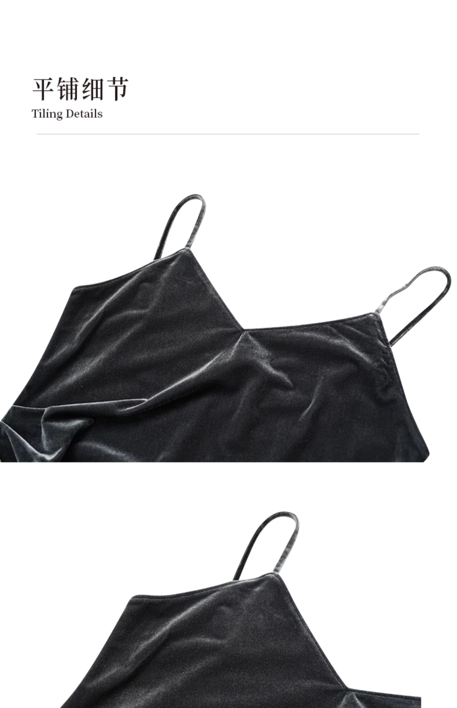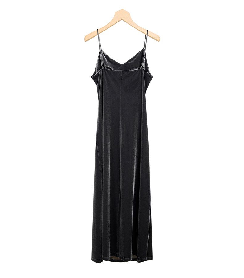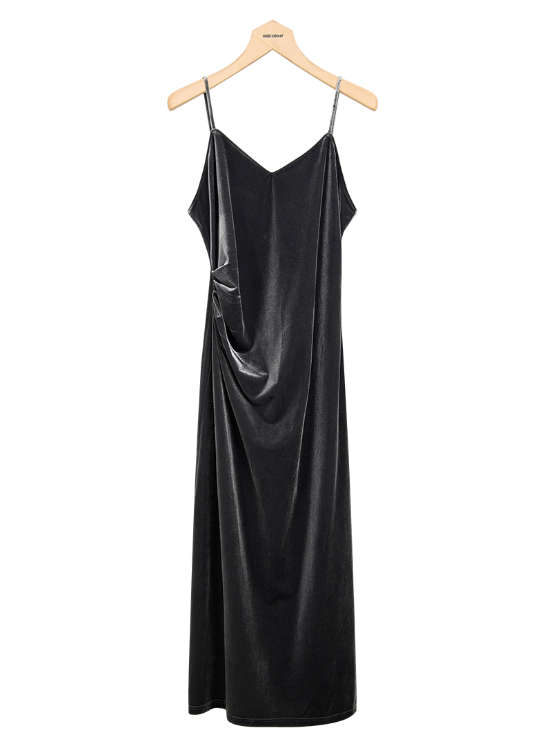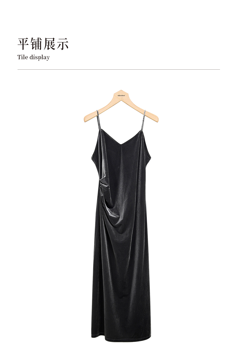 oldcolour冬季新品V领时尚收腰显瘦丝绒吊带连衣裙女P421005A1