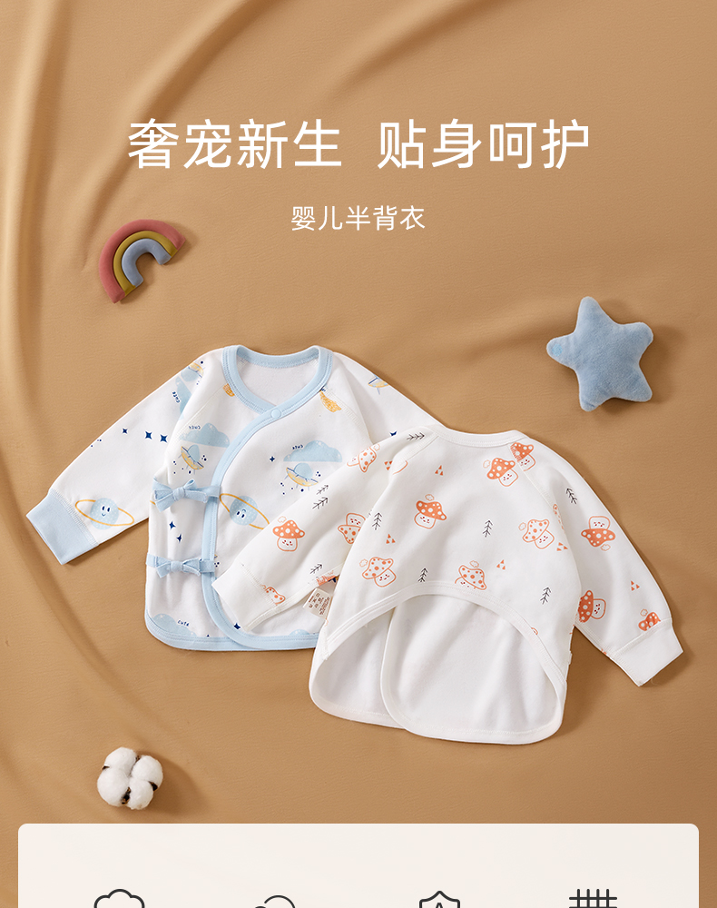 新生儿婴儿纯棉半背衣0-3-6个月