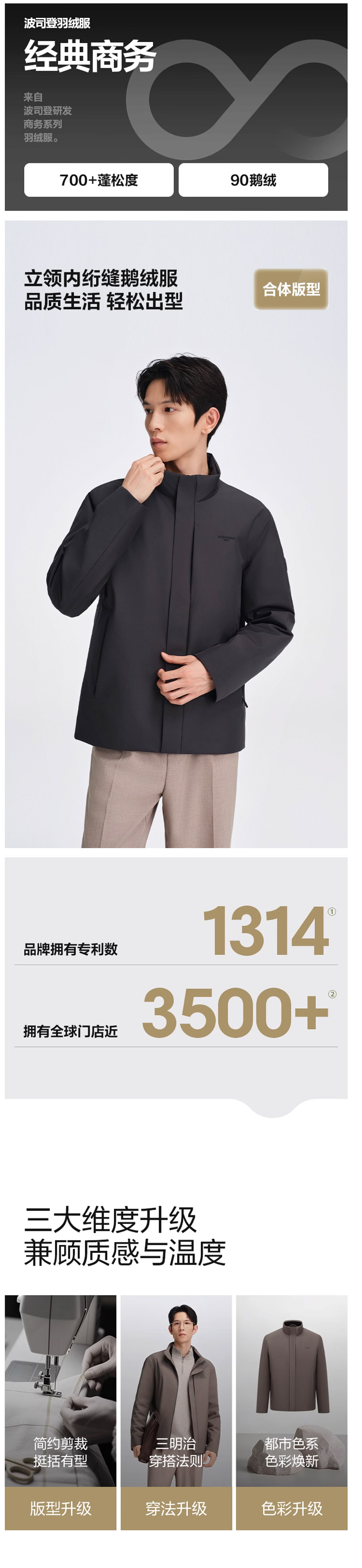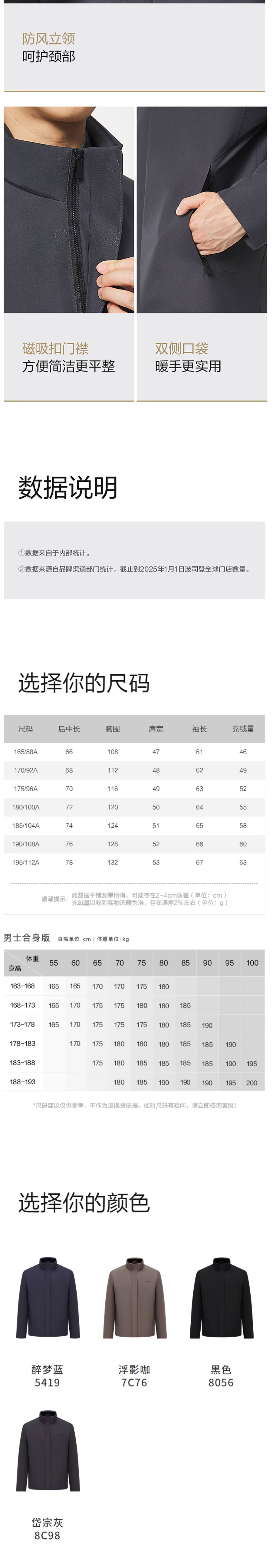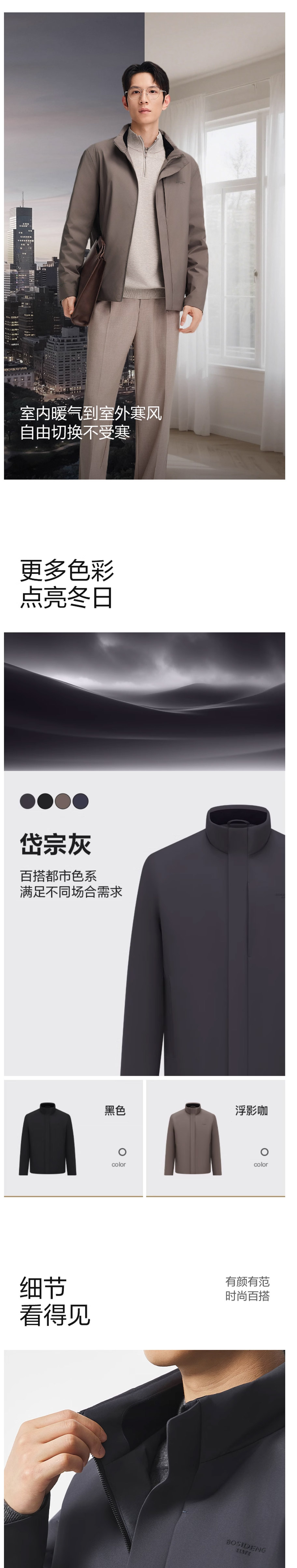 波司登羽绒服男短款2025秋冬新款休闲立领鹅绒保暖夹克B250134151