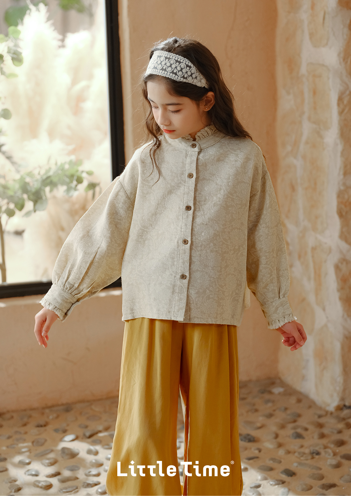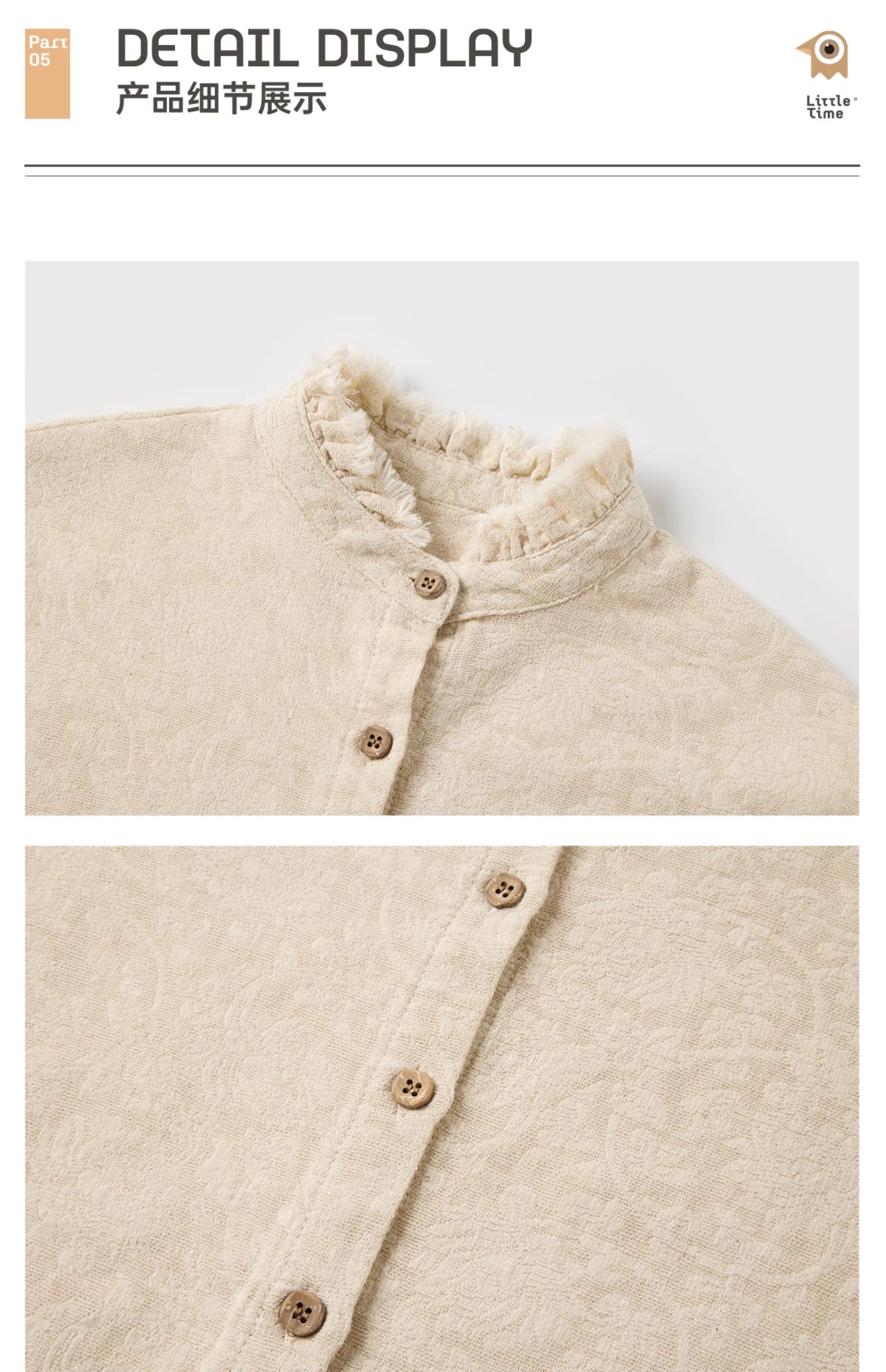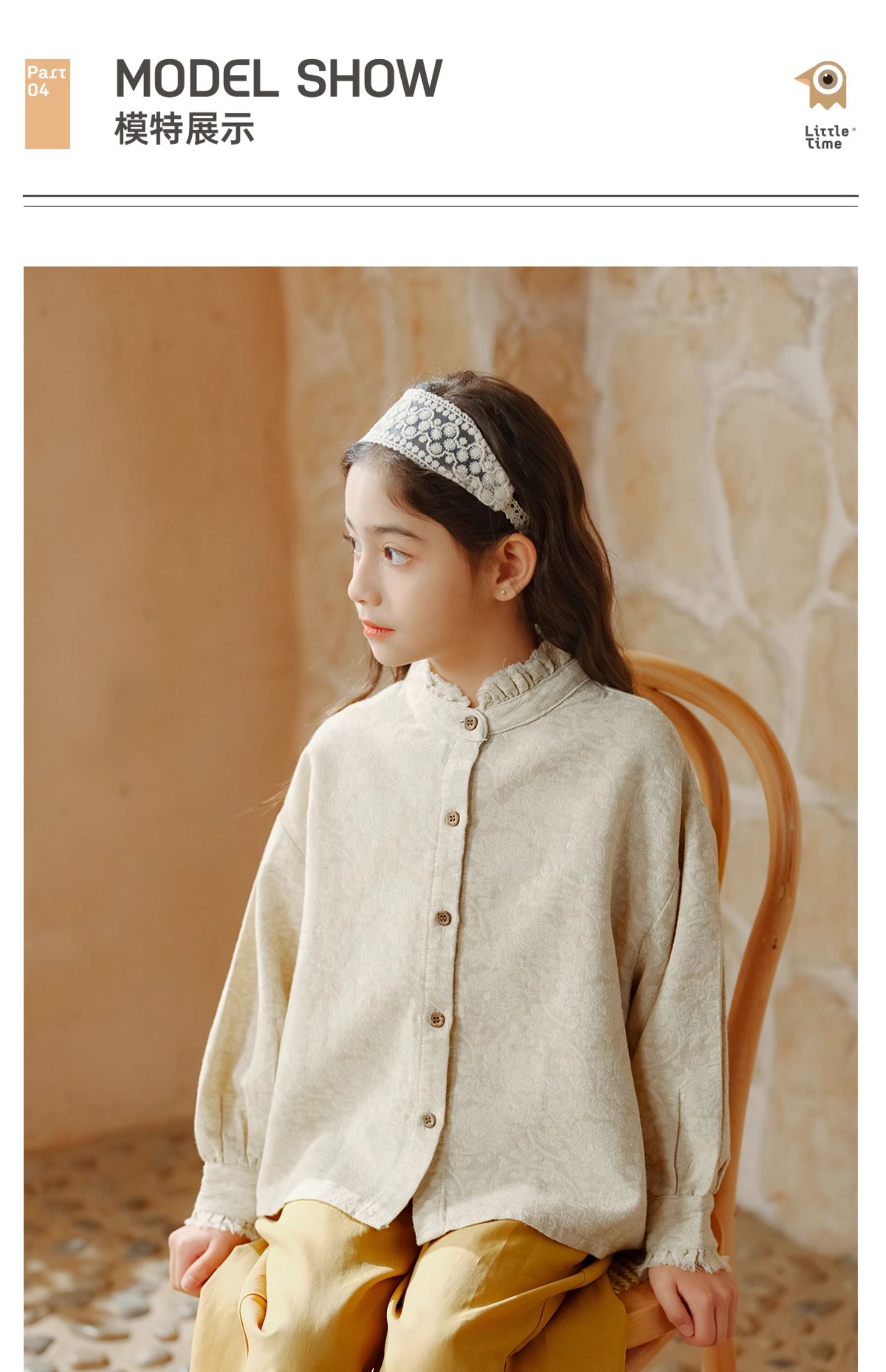 littletime女童衬衫2025春季新款棉衬衣宽松法式提花儿童长袖上衣