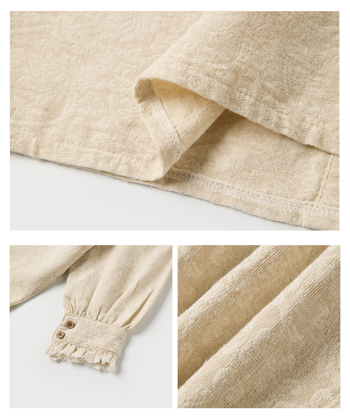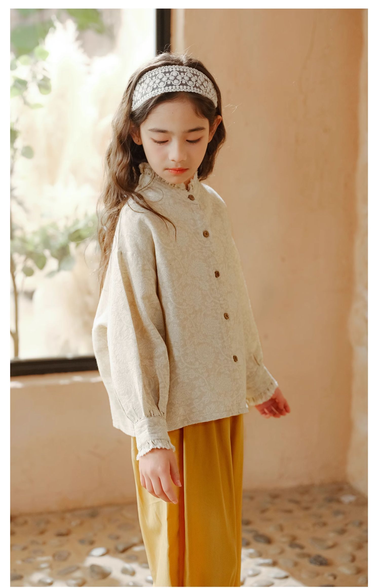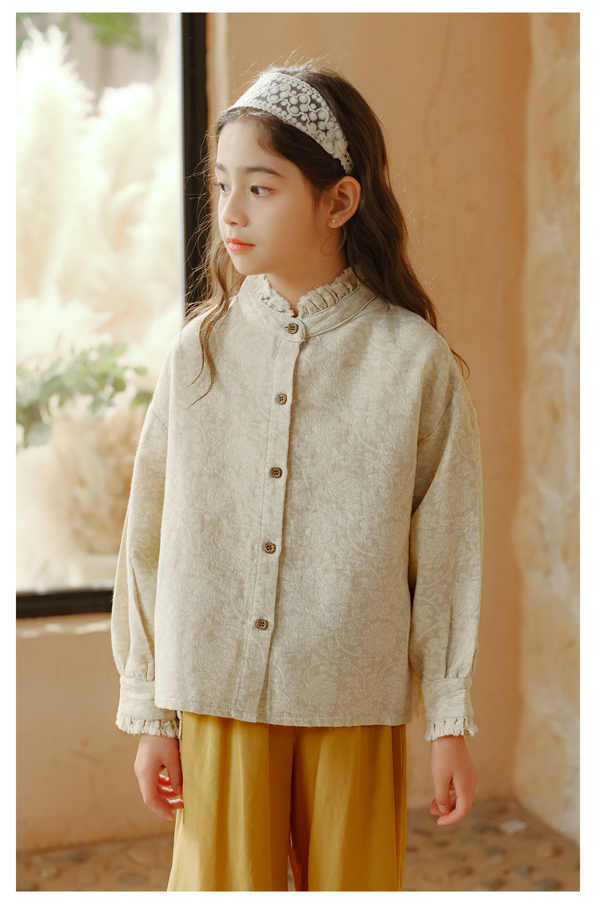 littletime女童衬衫2025春季新款棉衬衣宽松法式提花儿童长袖上衣