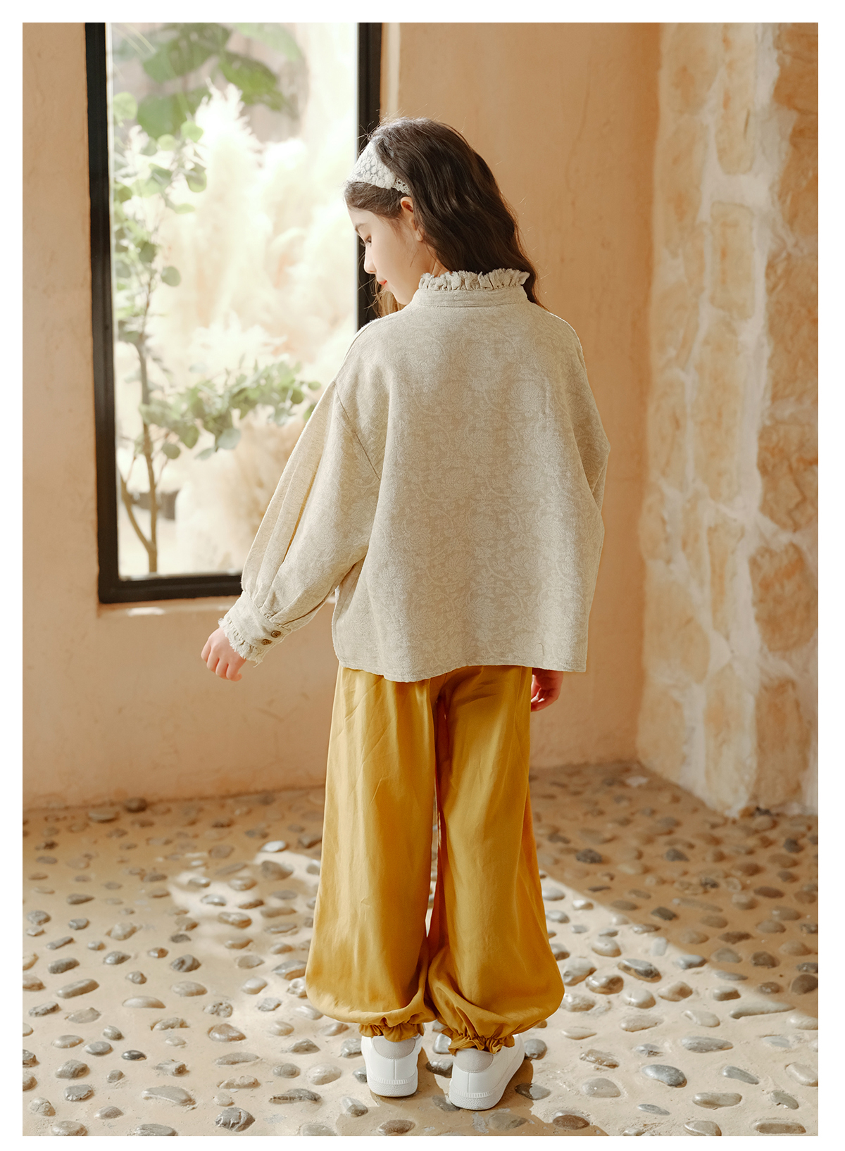 littletime女童荷叶边休闲裤2023新款白色微叭裤垂感九分长裤