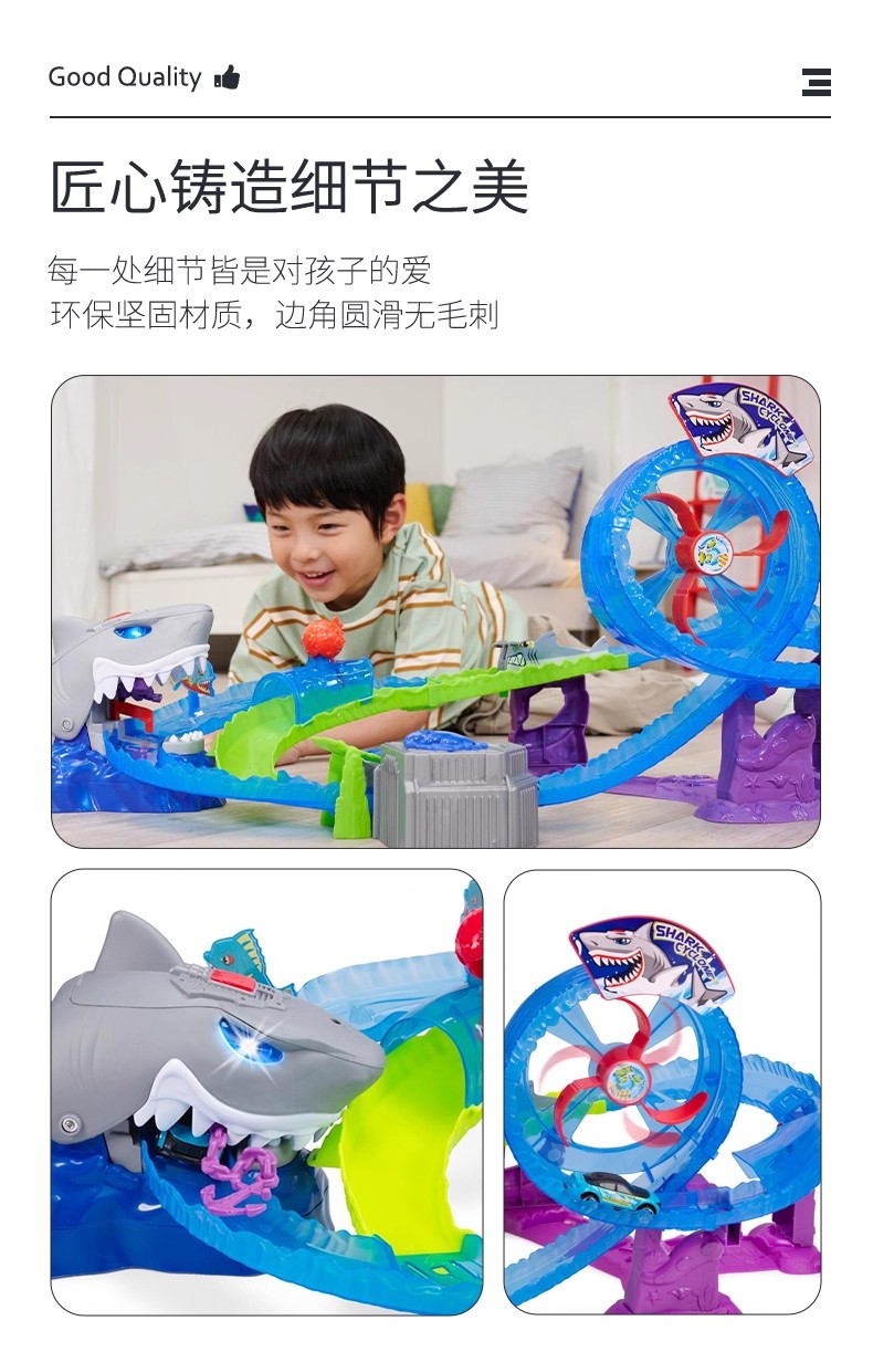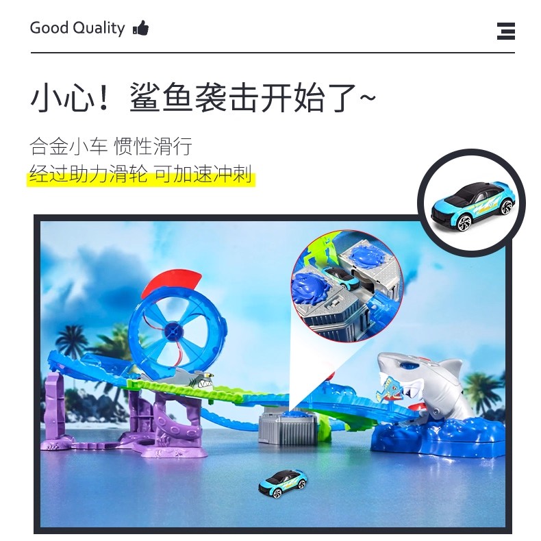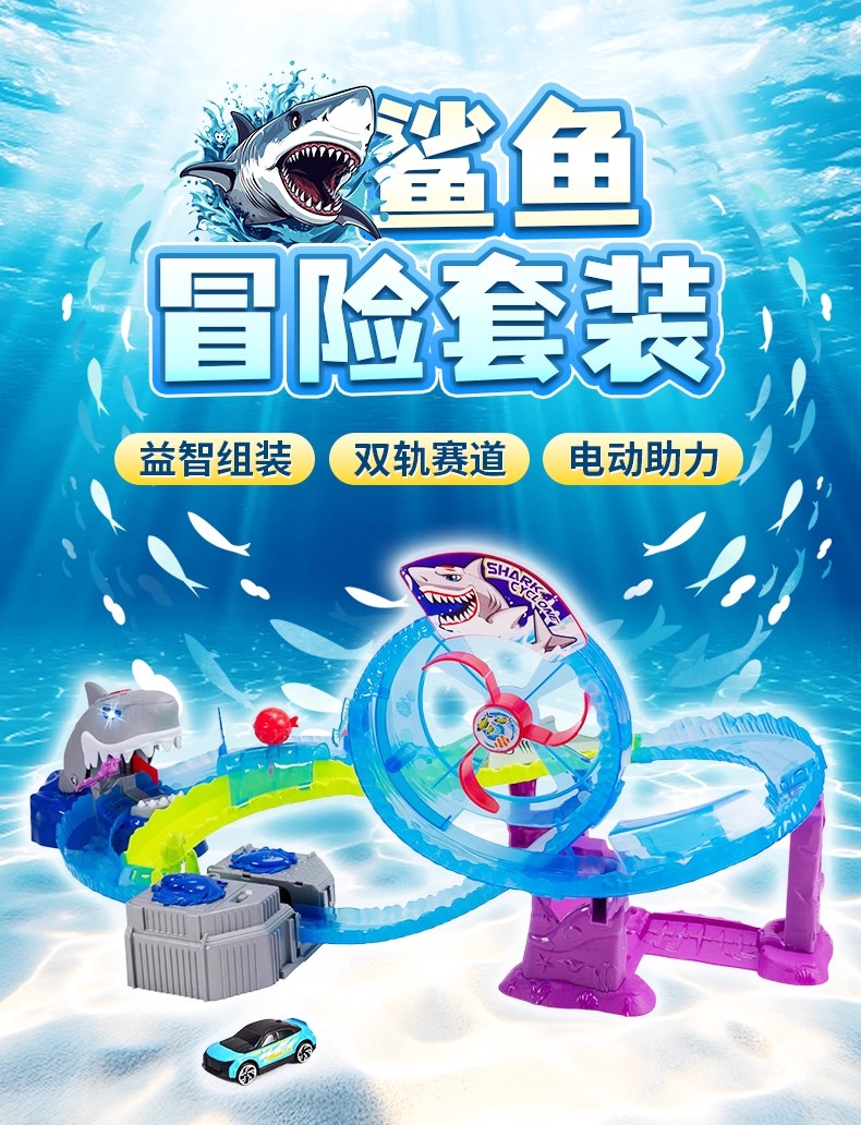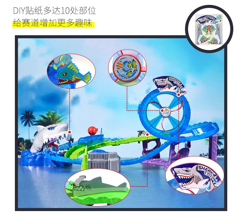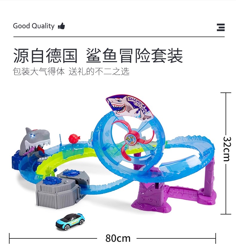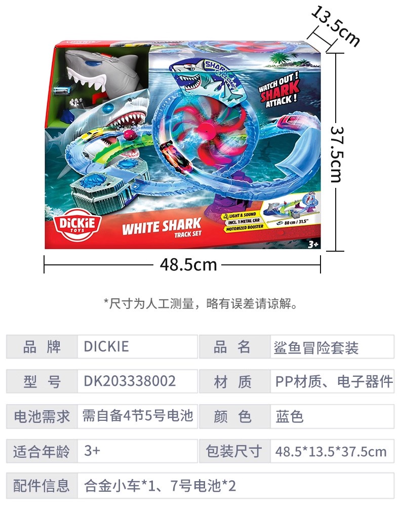 德国Dickietoys 鲨鱼冒险套装电动轨道飞车弹射竞技赛车儿童男孩玩具3岁+