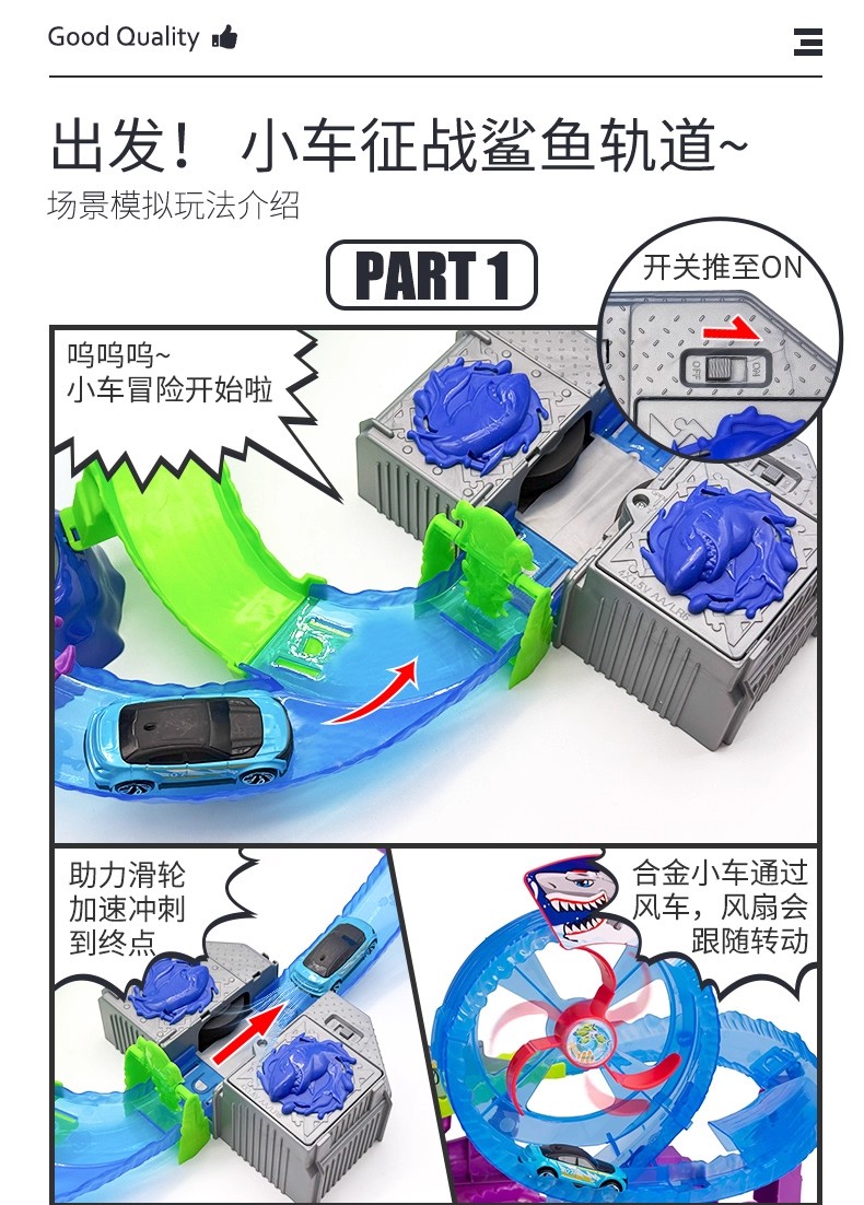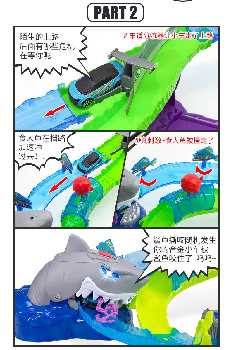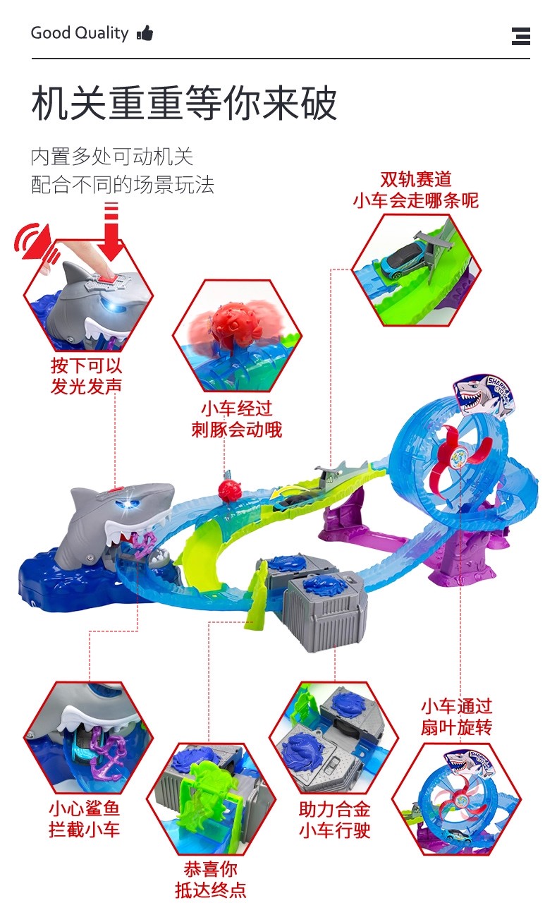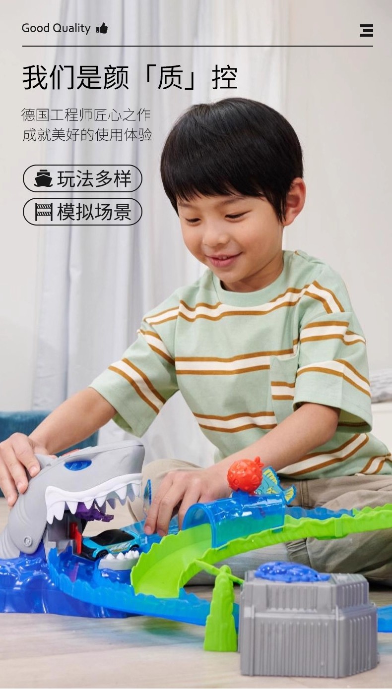 德国Dickietoys 鲨鱼冒险套装电动轨道飞车弹射竞技赛车儿童男孩玩具3岁+