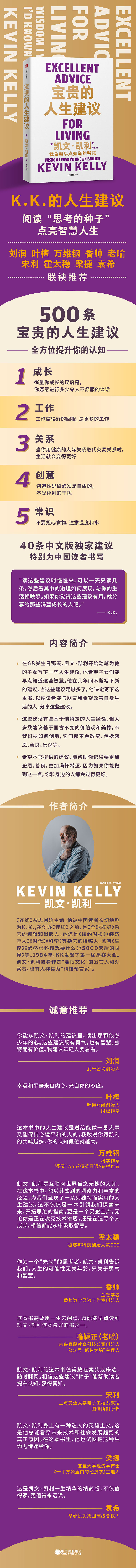 《失控》《必然》《5000天后的世界》作者K.K.的人生建议K.K.的人生建议,阅读“思考的种子",点亮智慧人生500条K.K.希望能早点知道的智慧成长×工作×关系×创意×常识,全方位提升你的认知