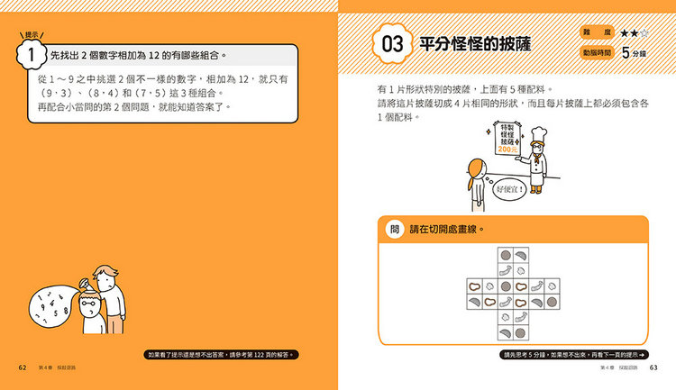 特色3. 看得見的思考過程:書末附有解答,並詳細說明解題的思考過程,以及不同方式的解法,讓孩子腦力全開,邏輯思維能力大大升級!