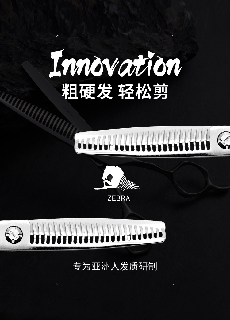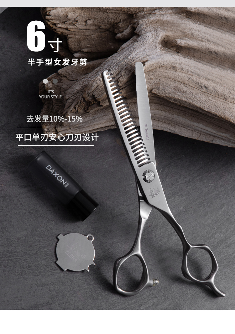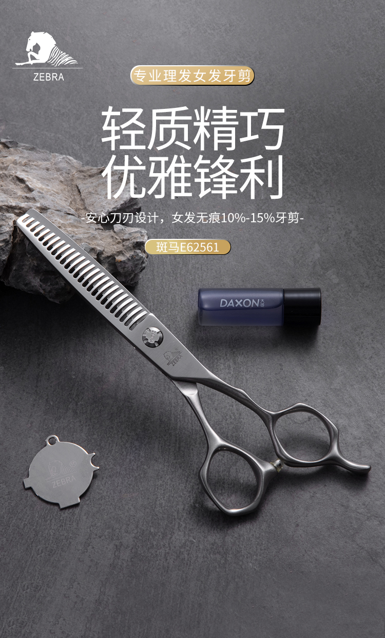 斑马“做自己系列”剪刀E62561 牙剪/调量剪/无痕牙剪/打薄剪/去发量10-15%/ 平齿/25根齿/正刃/6寸
