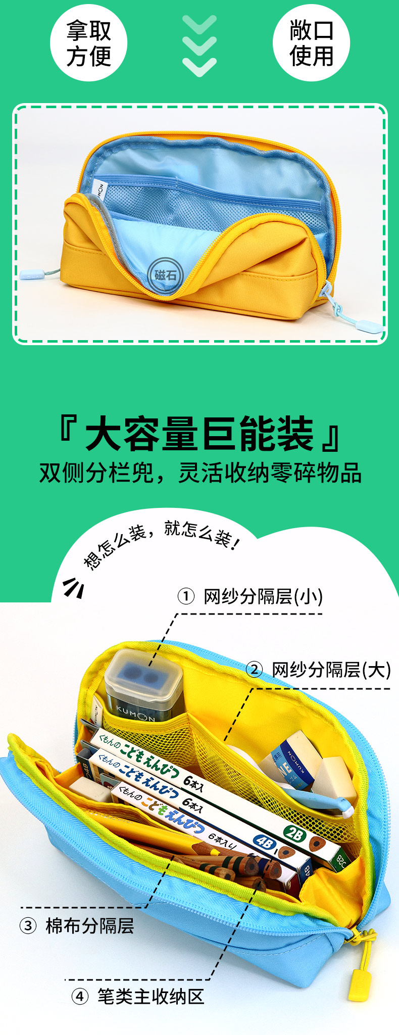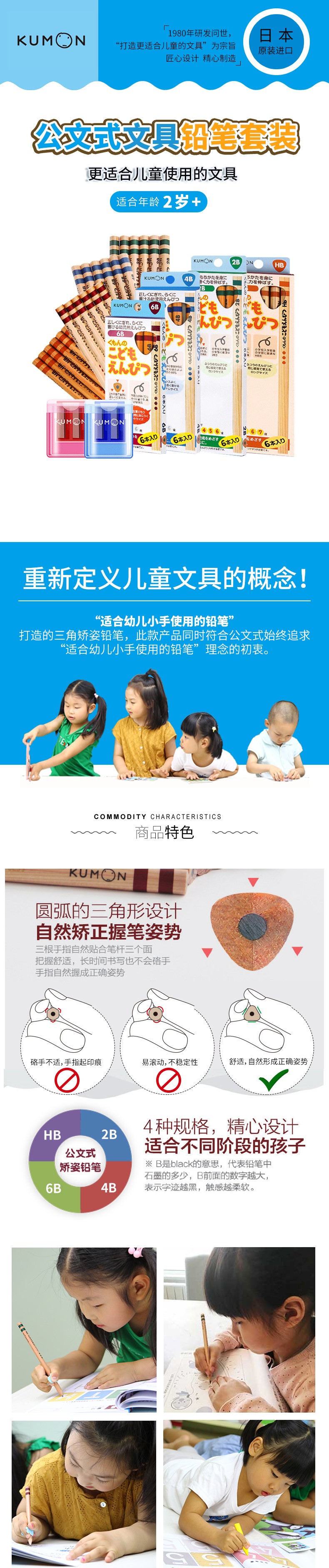 KUMON儿童开学公文式文具铅笔橡皮延长笔套转笔刀直尺笔袋