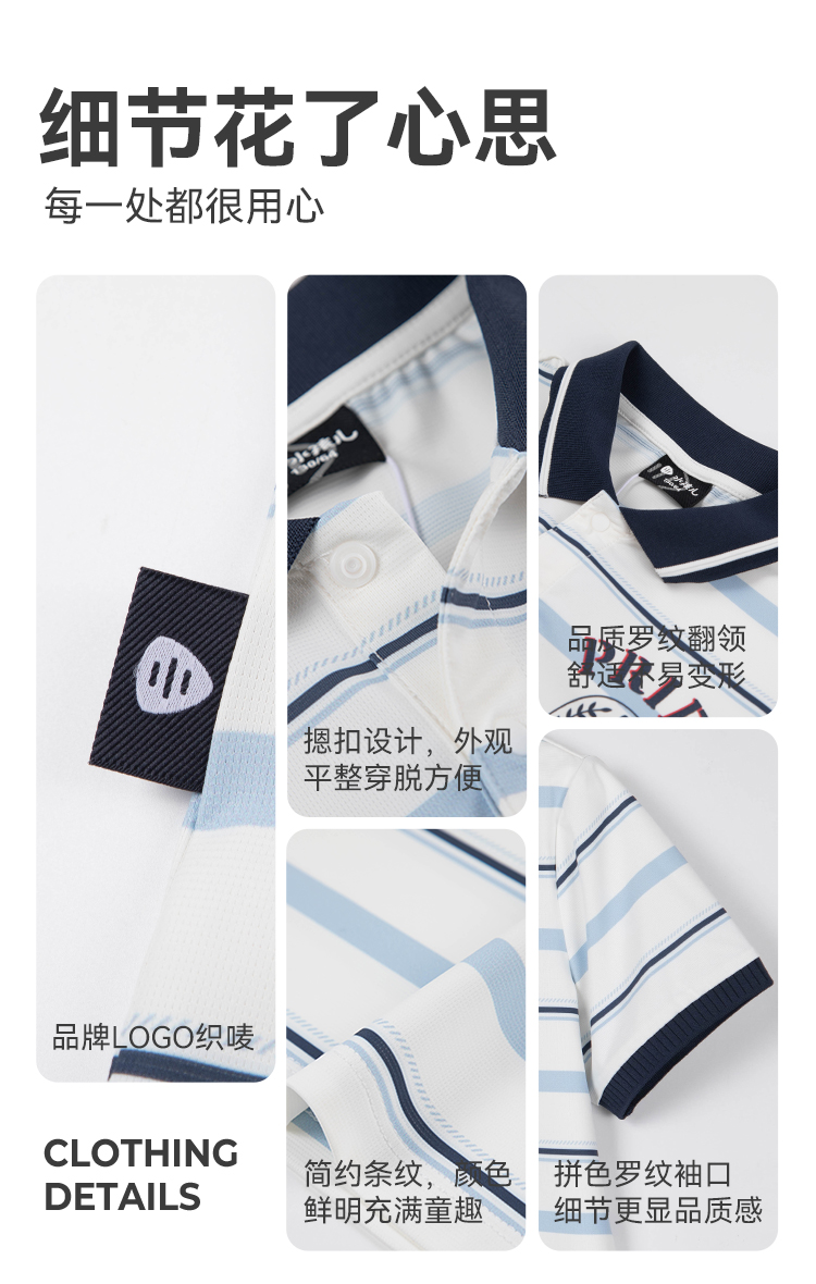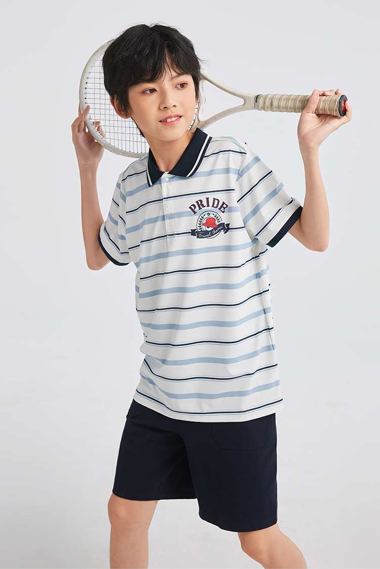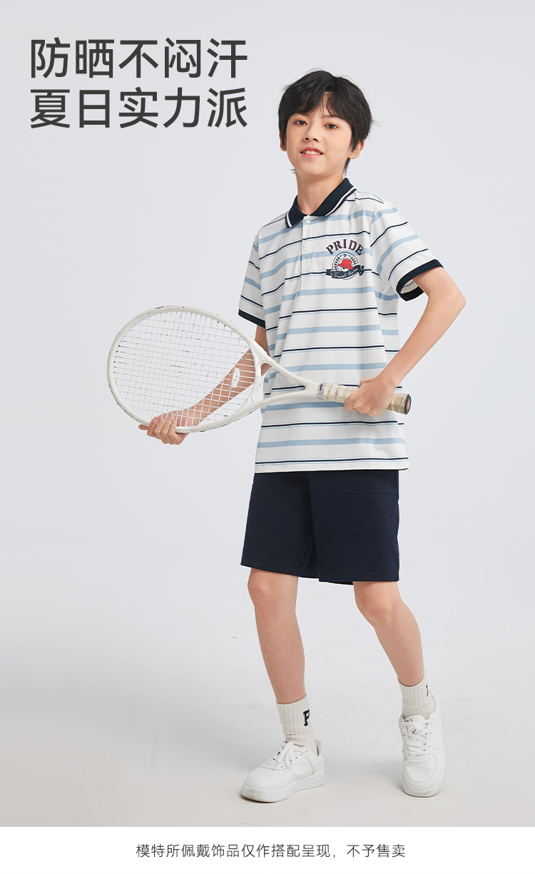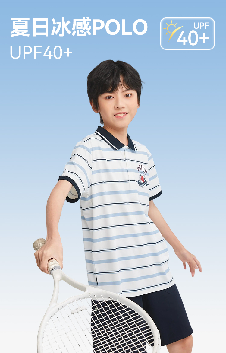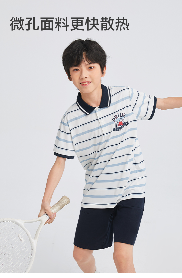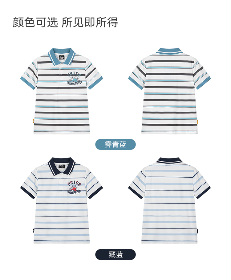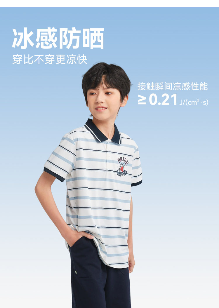 水孩儿童装男童防晒凉感POLO衫儿童弹力透气短袖简约条纹上衣