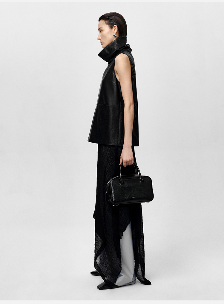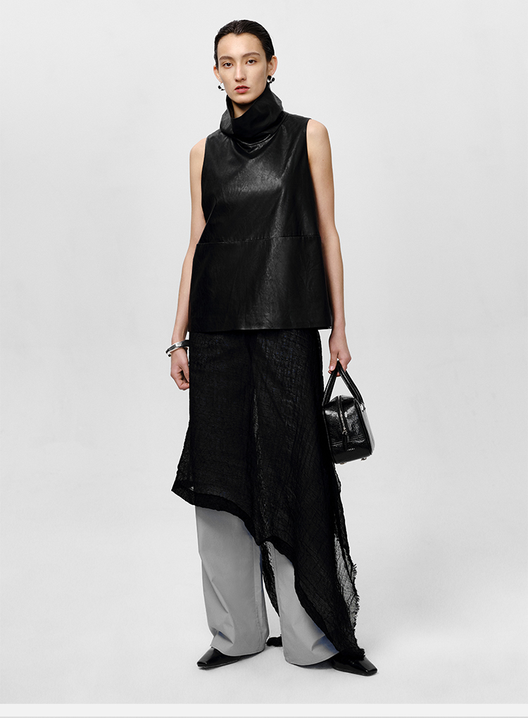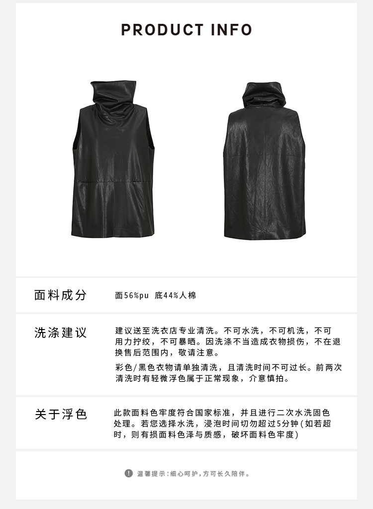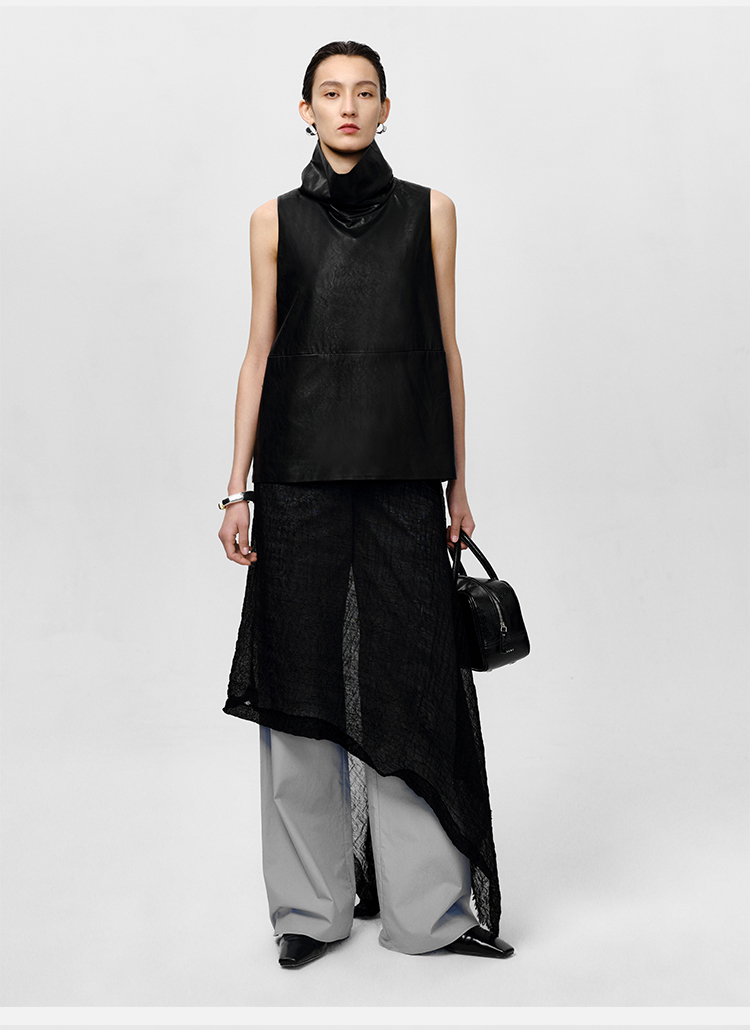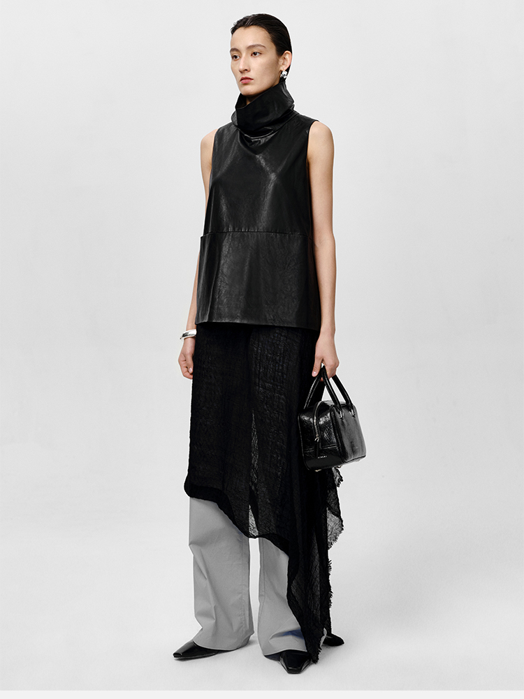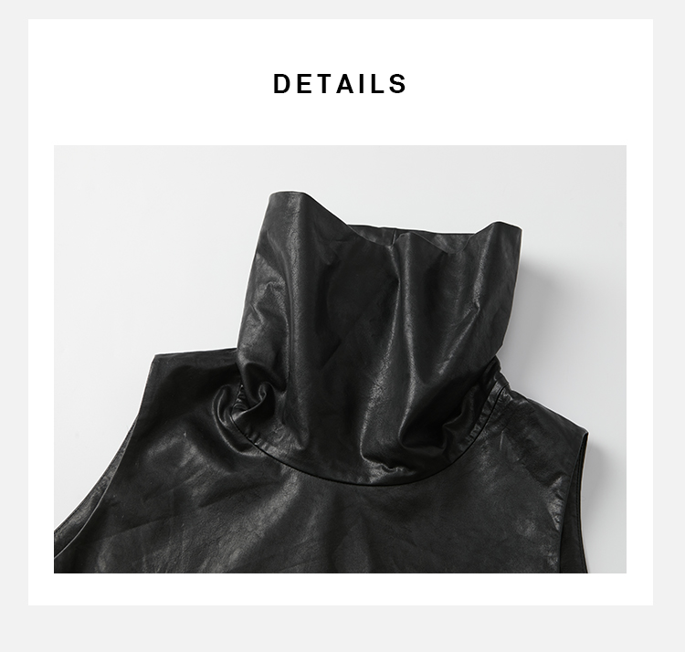 HIDEMI 极简翻领立领廓形口袋环保皮马夹外套皮衣