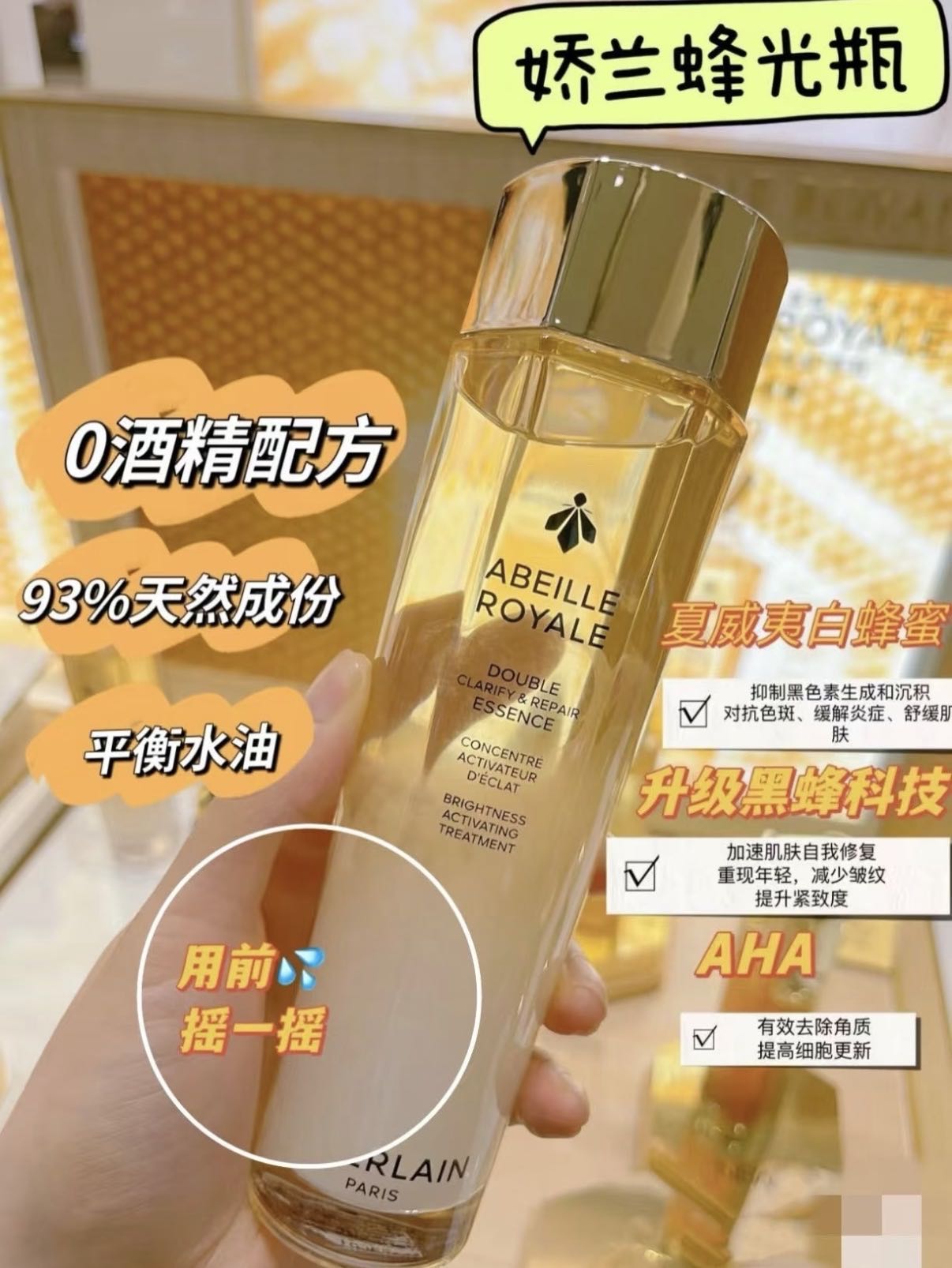 今年娇兰也为油皮推出了一款精华水即双效精华水,又称蜂黄瓶