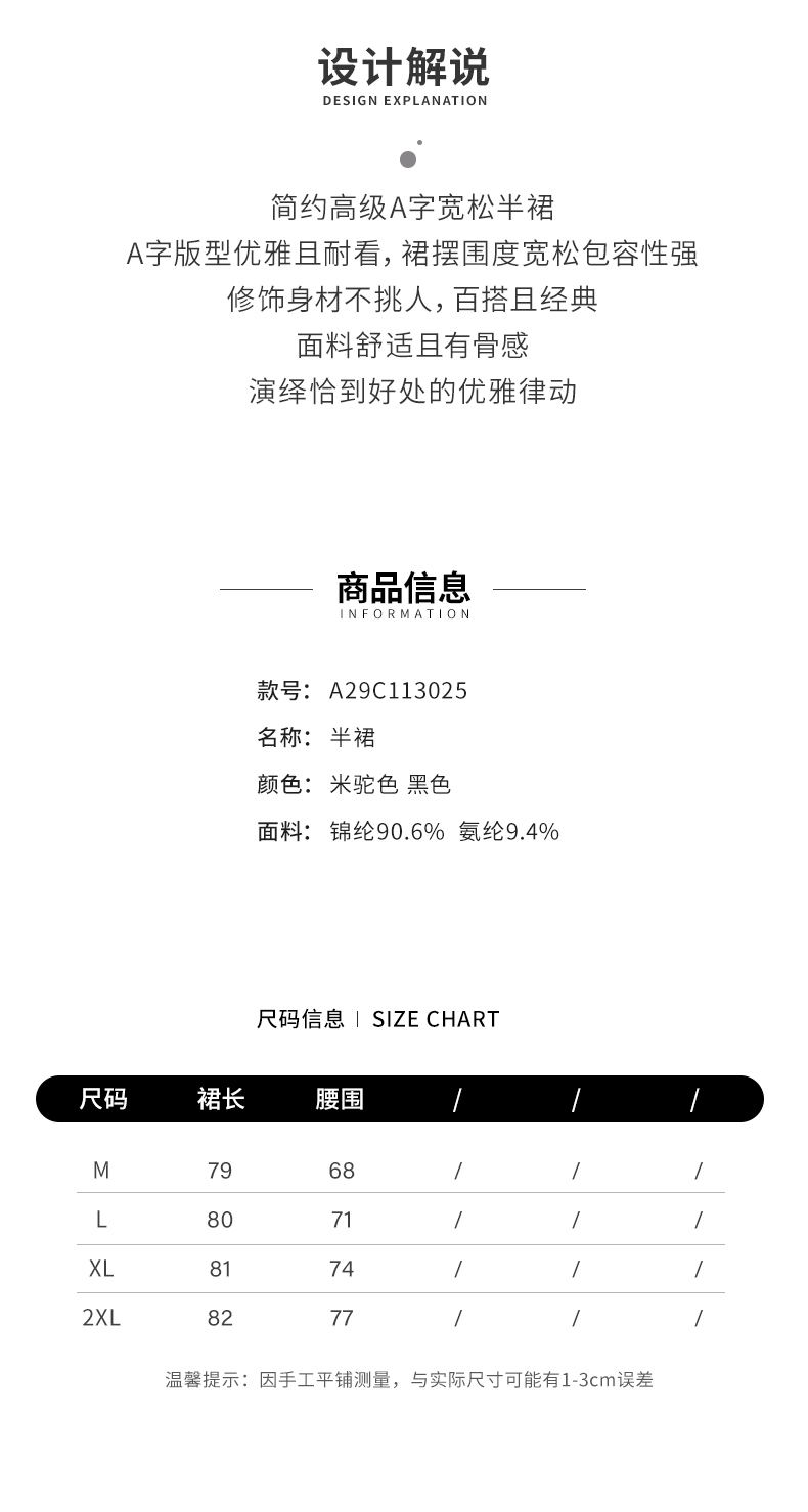 【积分兑换】阿菁娜2024春季新款A字优雅宽松半裙A29C113025