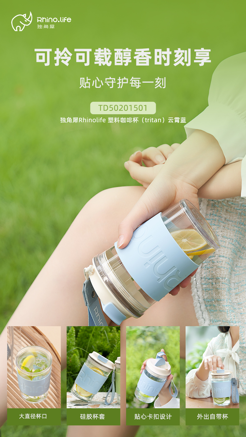TD50201501-独角犀Rhinolife 塑料咖啡杯(tritan)云霄蓝