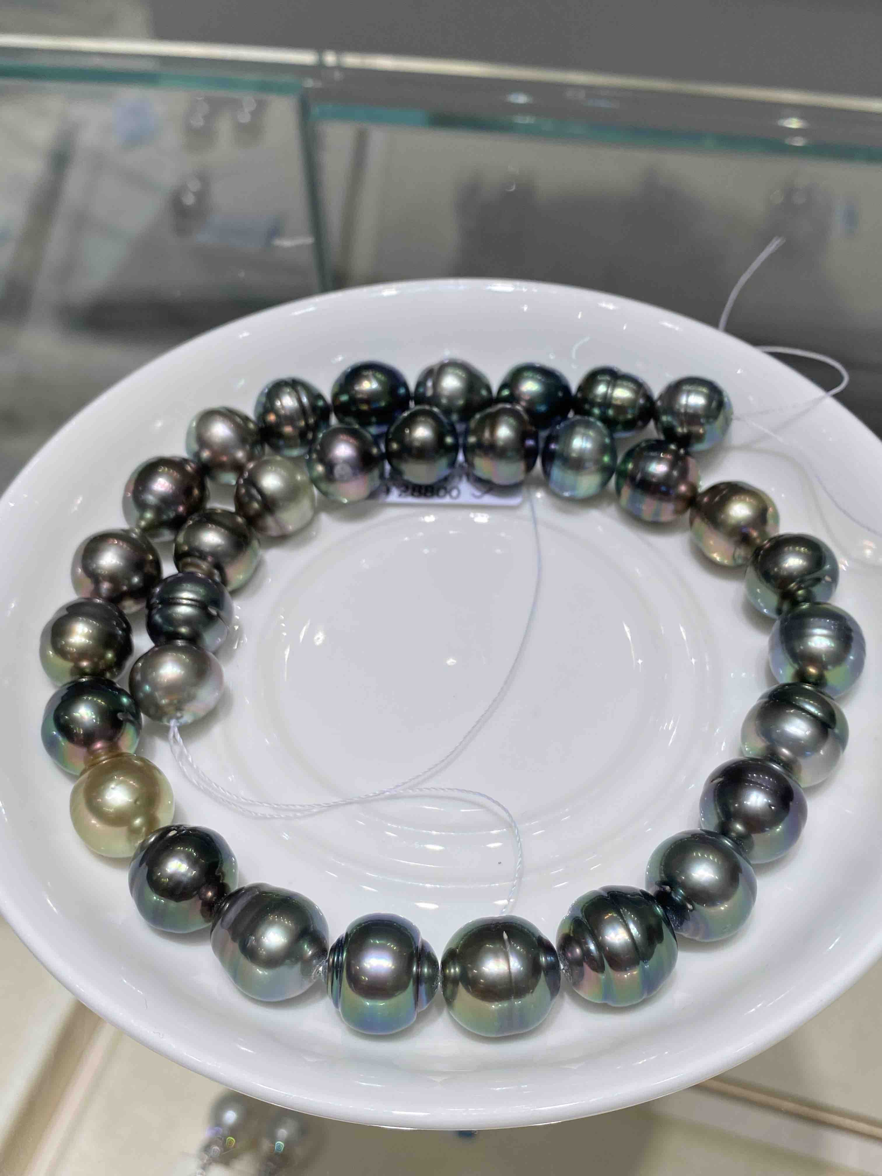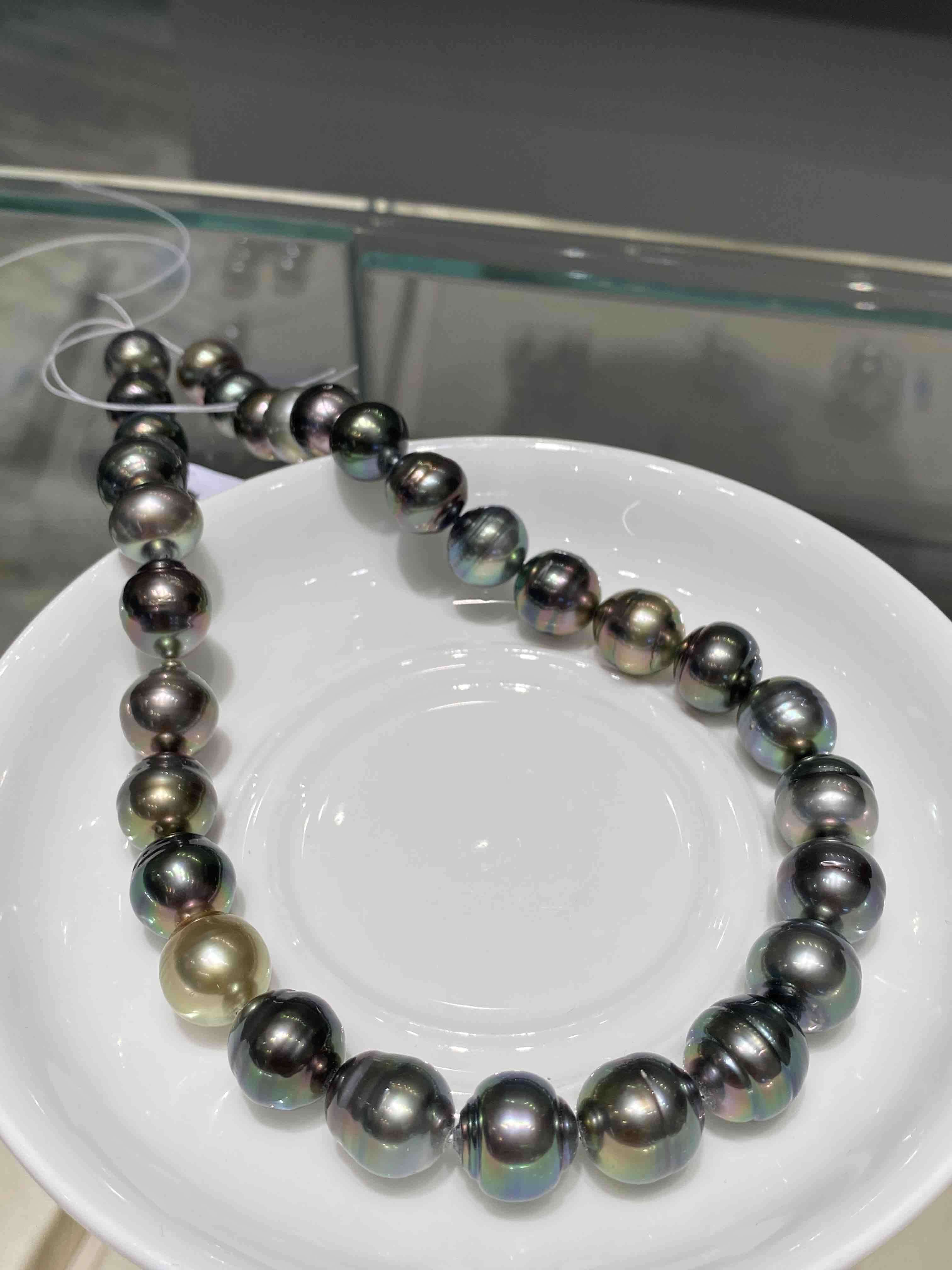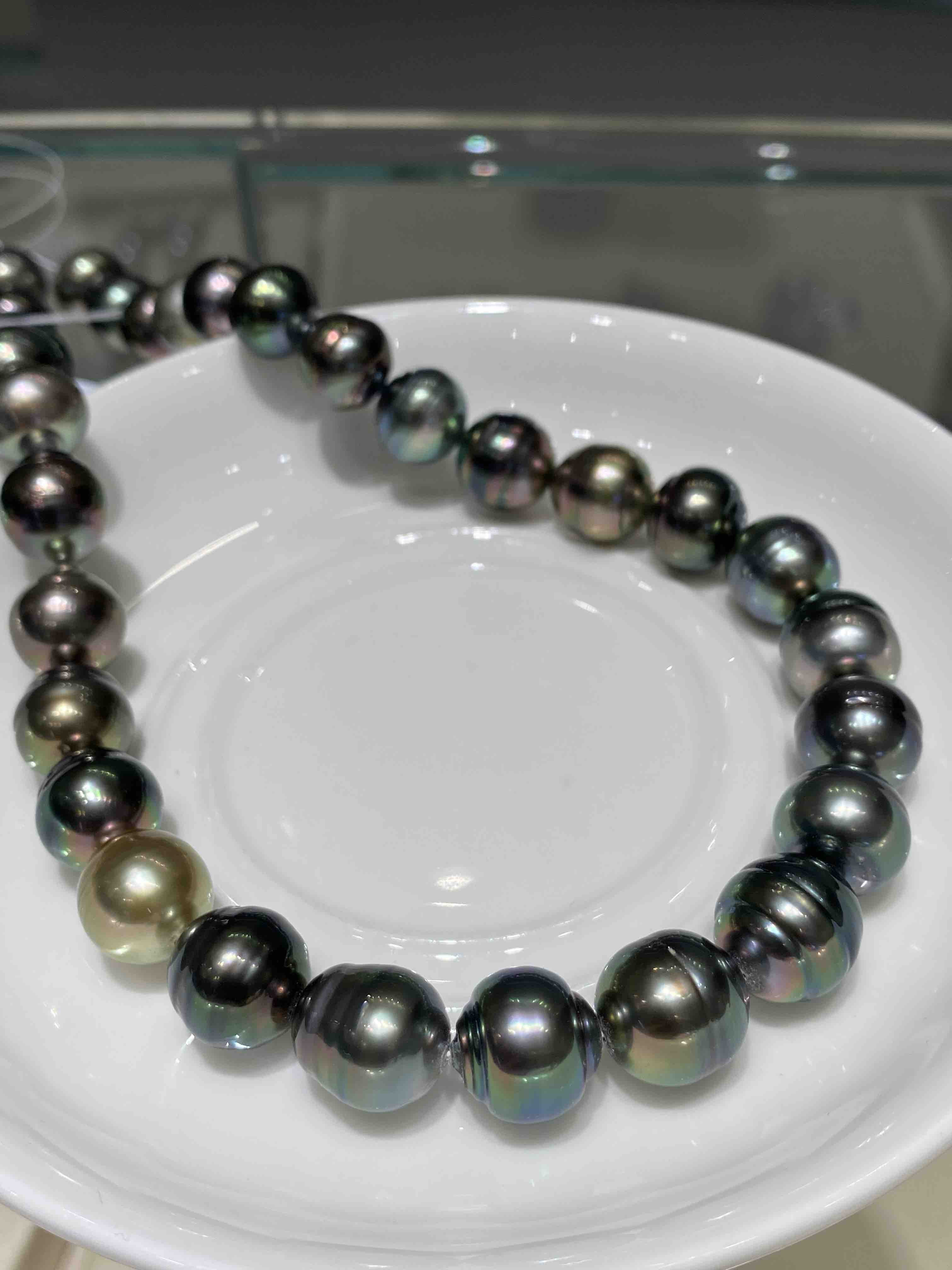 【私席真珠·新年盛宴】大溪地极光孔雀色螺纹珠链 11.7-13mm 丰富的晕彩