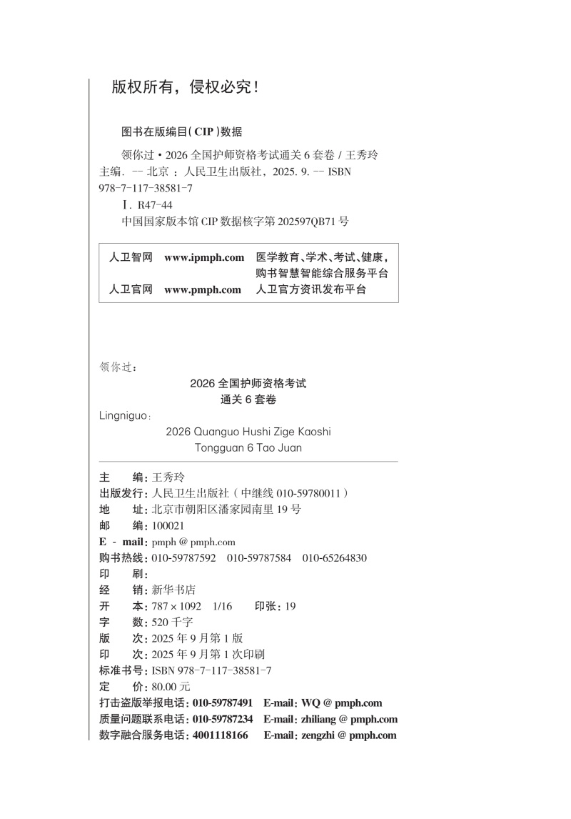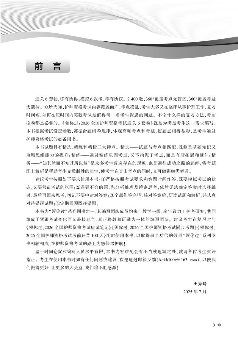 书名:领你过:2026全国护师资格考试 通关6套卷
