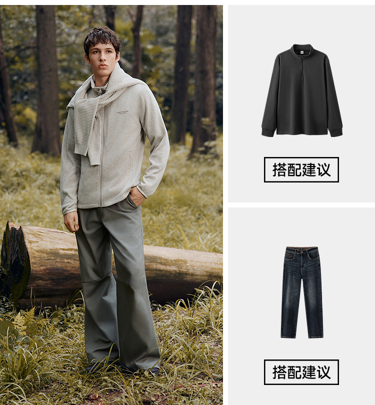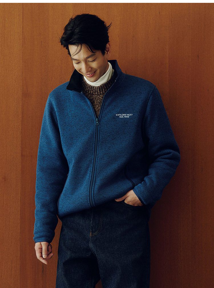 森马外套男抗静电花纱针织夹克立领2025秋冬新款绣花上衣休闲时尚